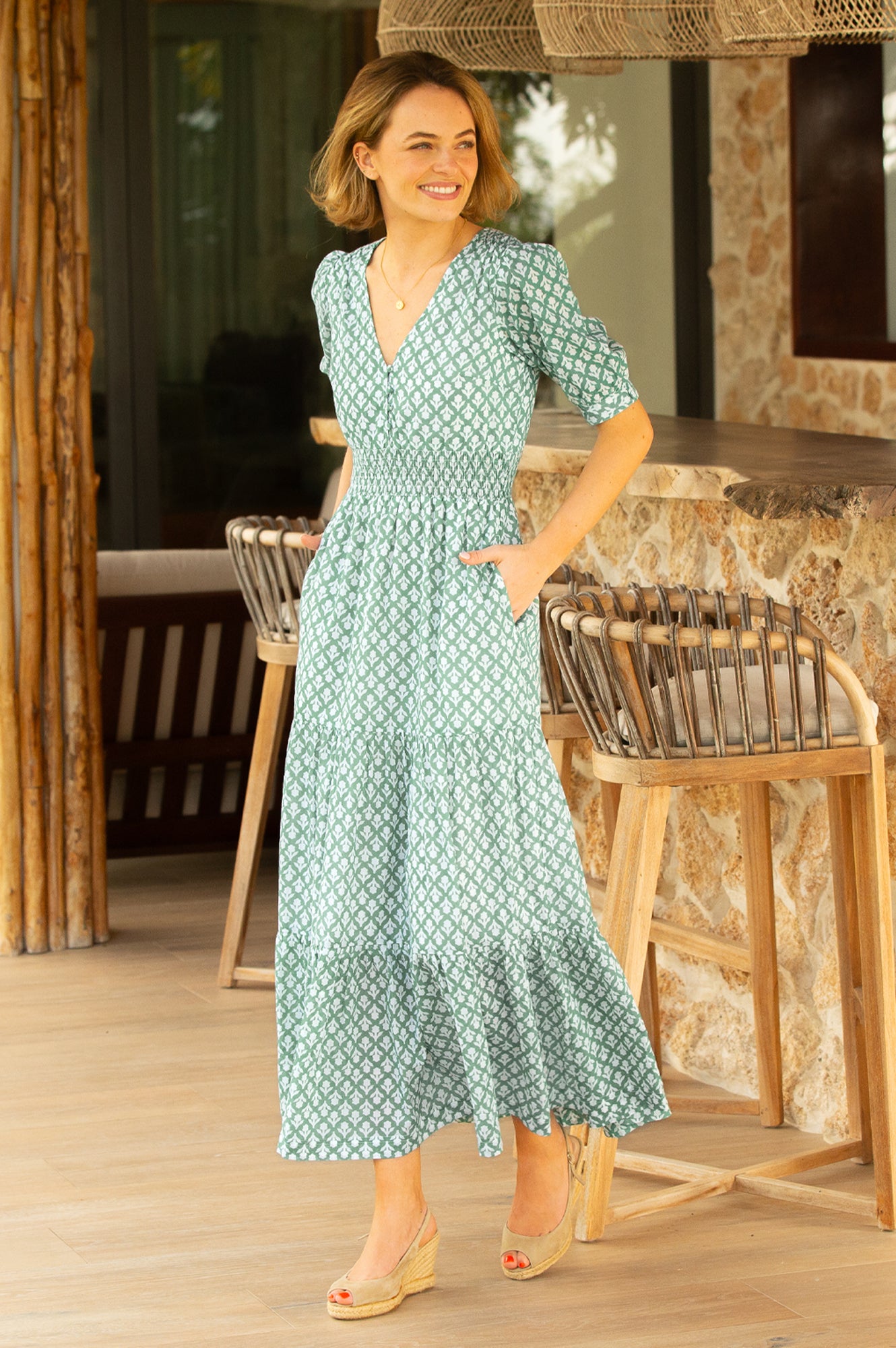 The beautiful Billie short sleeve dress offers understated glamour that will take you from day to night. In organic lightweight cotton, this slip-on style dress with a shirred waistband combines feel good comfort with style for summer days.