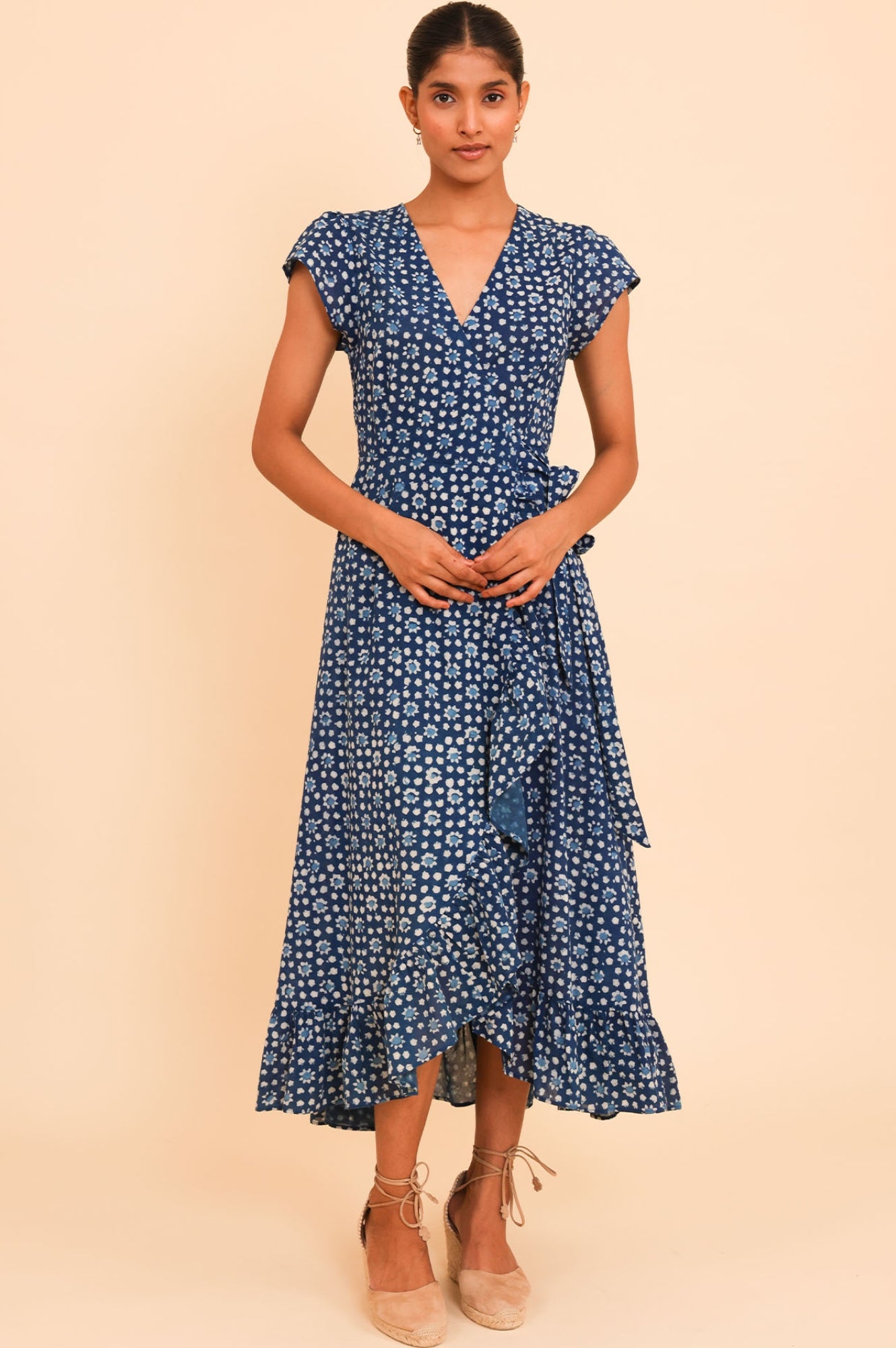 Our best-selling Demi Wrap Dress makes a triumphant return in a playful new Indigo print! Crafted from 100% Organic Cotton, this dress is not only soft and breathable but also environmentally friendly. The flattering V neckline adds a touch of elegance, while the small opening for the adjustable waist tie allows for a customizable fit, ensuring comfort throughout the day. The wrap design is incredibly versatile, making it suitable for all body types, enhancing your natural silhouette beautifully. Perfect for any occasion—whether you're heading to brunch, a picnic, or a casual evening out—this dress is a stylish and effortless choice that you'll reach for time and time again.