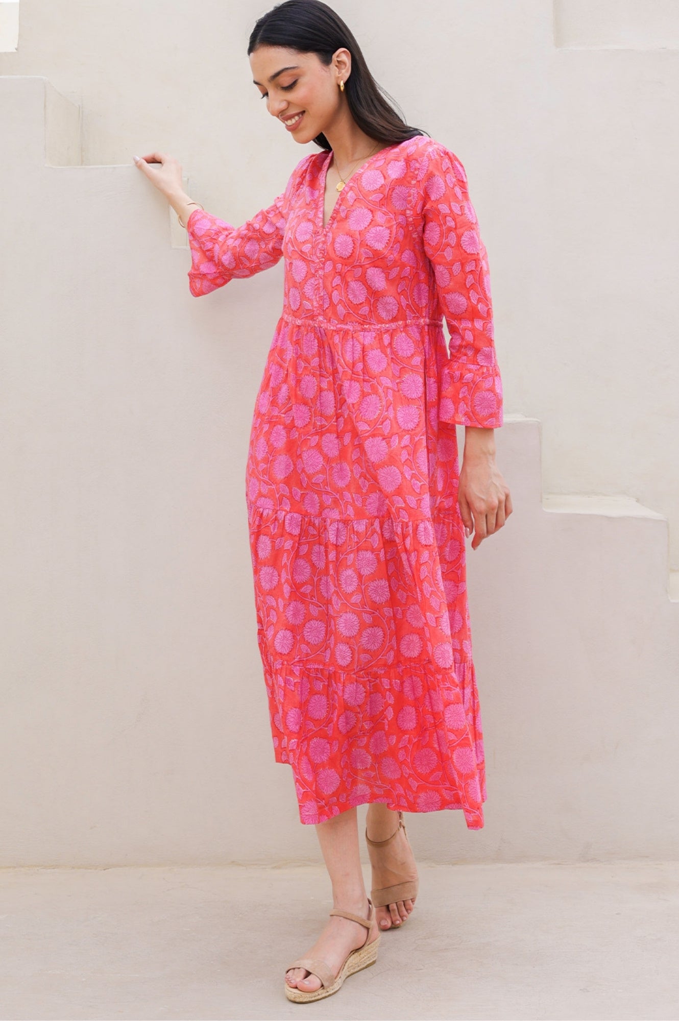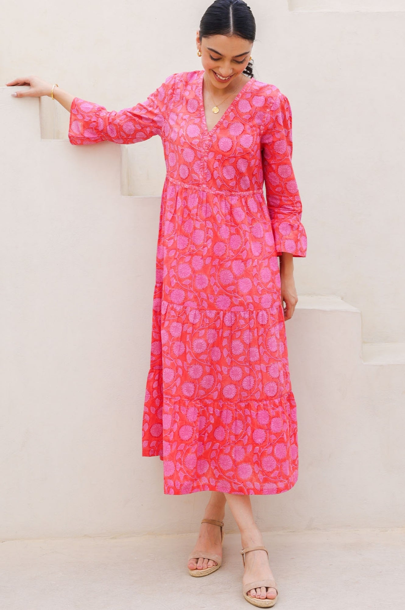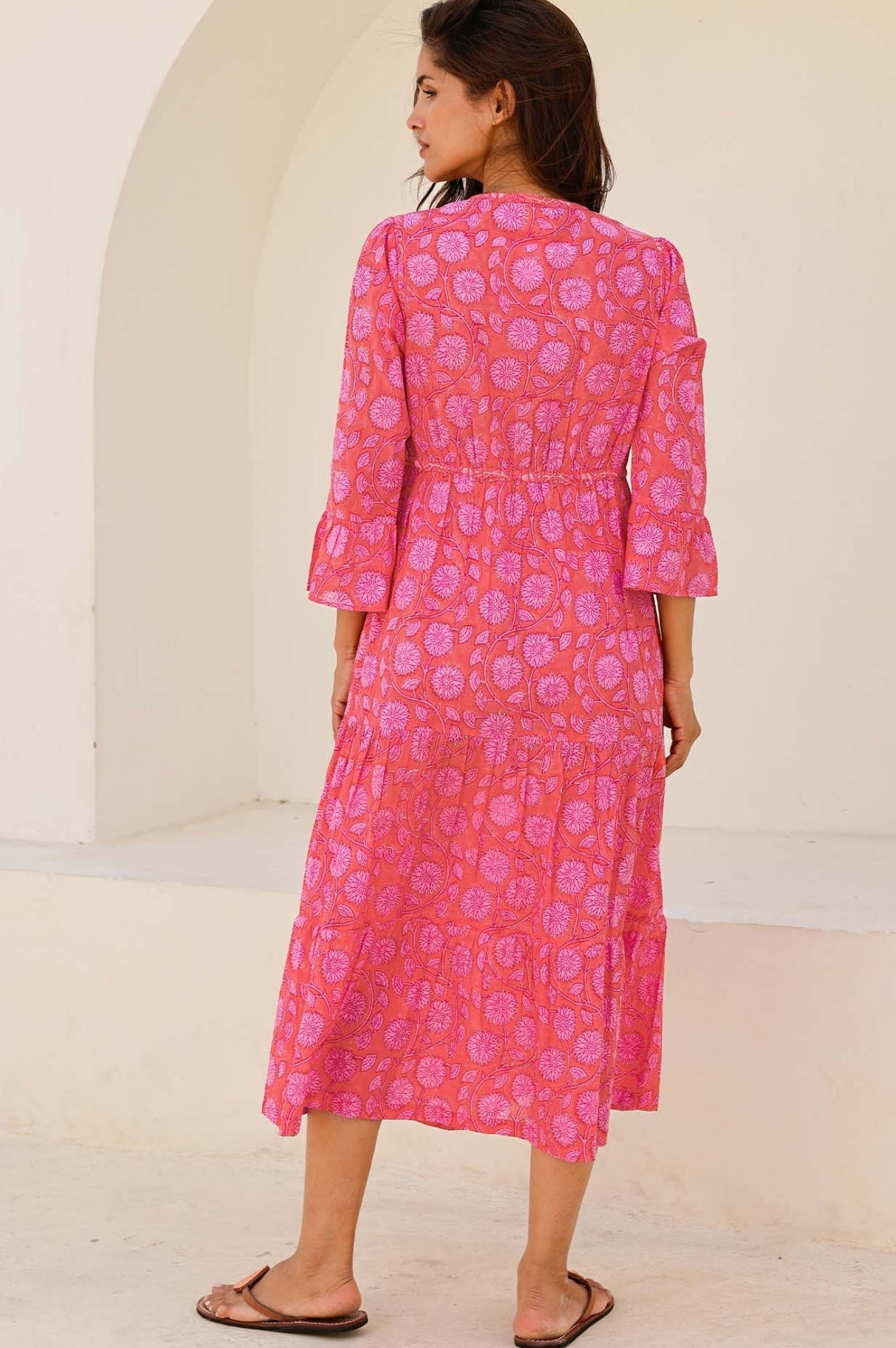 This gorgeous floral print is block printed by hand in Jaipur. Crafted from soft organic cotton, the Hayden dress is unlined but comes with a detachable cami, designed for holidays to throw on and take you from the beach to the bar. To find out more about the Art of Block Printing, click here.