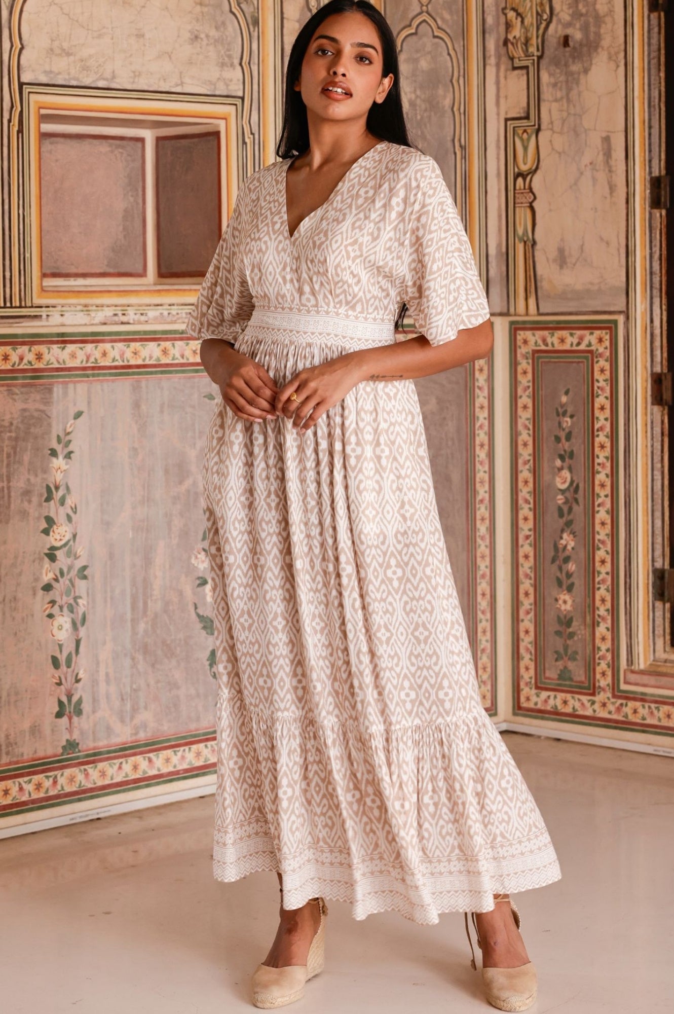 Introducing our Lena Dress, back in a new print this season and made from a sustainable mid-weight Viscose EcoVero™ in a floaty midaxi silhouette. Featuring a v-neckline, and a deep contrasting waistband that is shirred at the back for comfort. It now features a zip for added convenience.