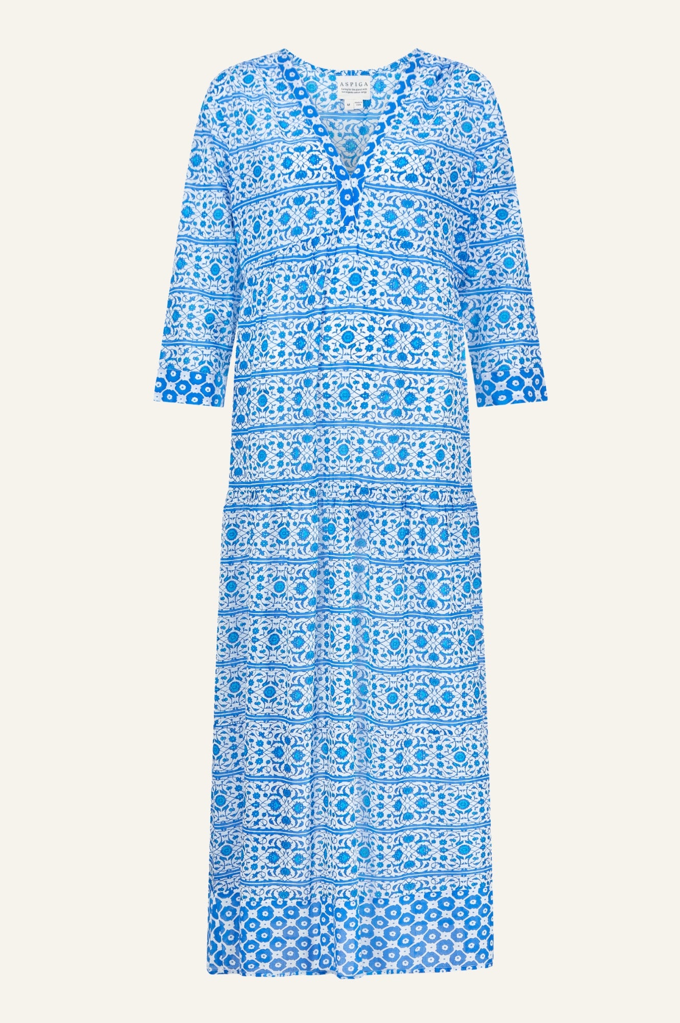 Introducing the Mykonos Organic Cotton Maxi Dress. A best-selling style, this pull-on maxi dress features a bold floral print with a contrast print on the neck, hem and cuffs. Ideal for holidays and hot summer days, the dress is unlined to keep you cool.