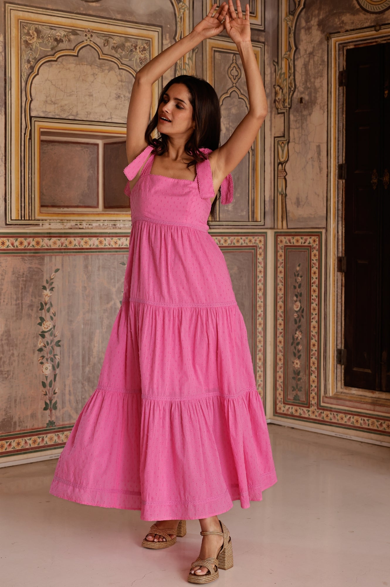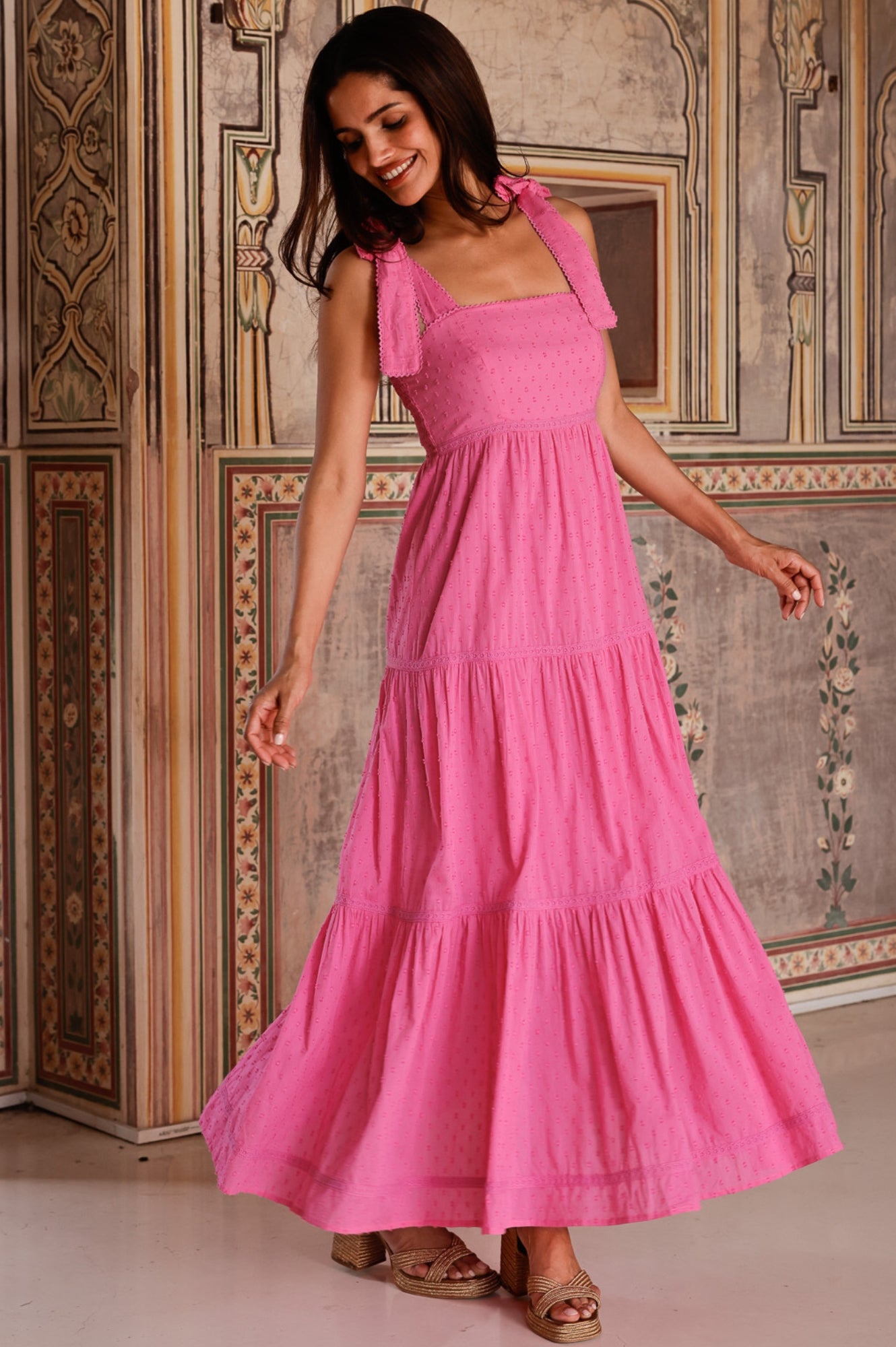 The Tabitha Dress is the ultimate elevated sundress, now available in a beautiful, lightweight 100% organic cotton dobby. With wide tie shoulder straps adorned with delicate lace trim, this bestselling design is made to flatter every body shape. The dress features a fitted bodice with a shirred back panel for extra comfort and flexibility, while the long, flowing fit-and-flare skirt drapes elegantly from just under the bust. A must-have addition to your summer wardrobe.