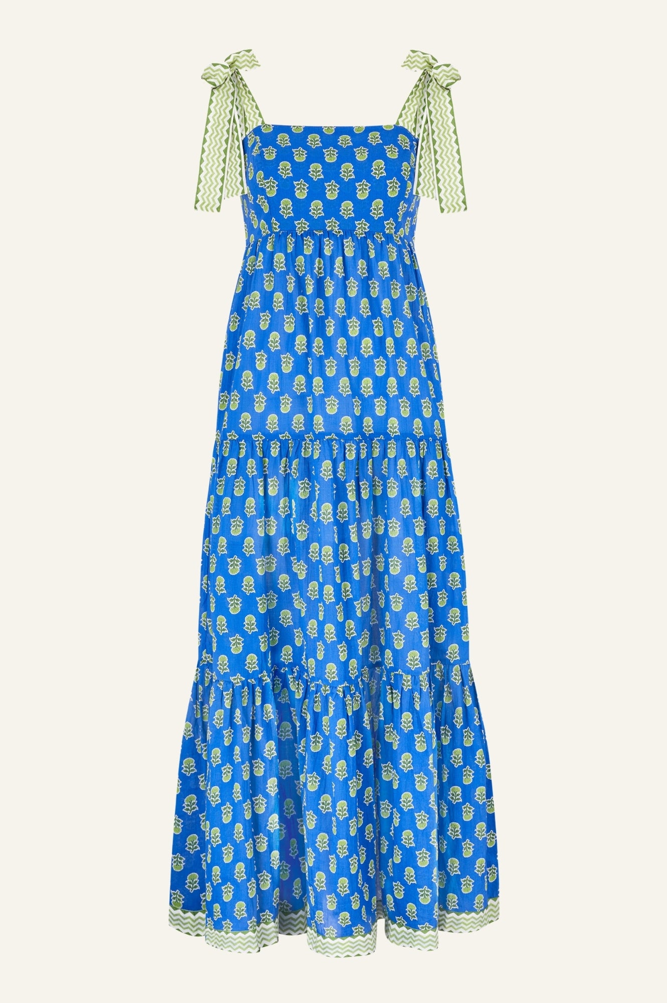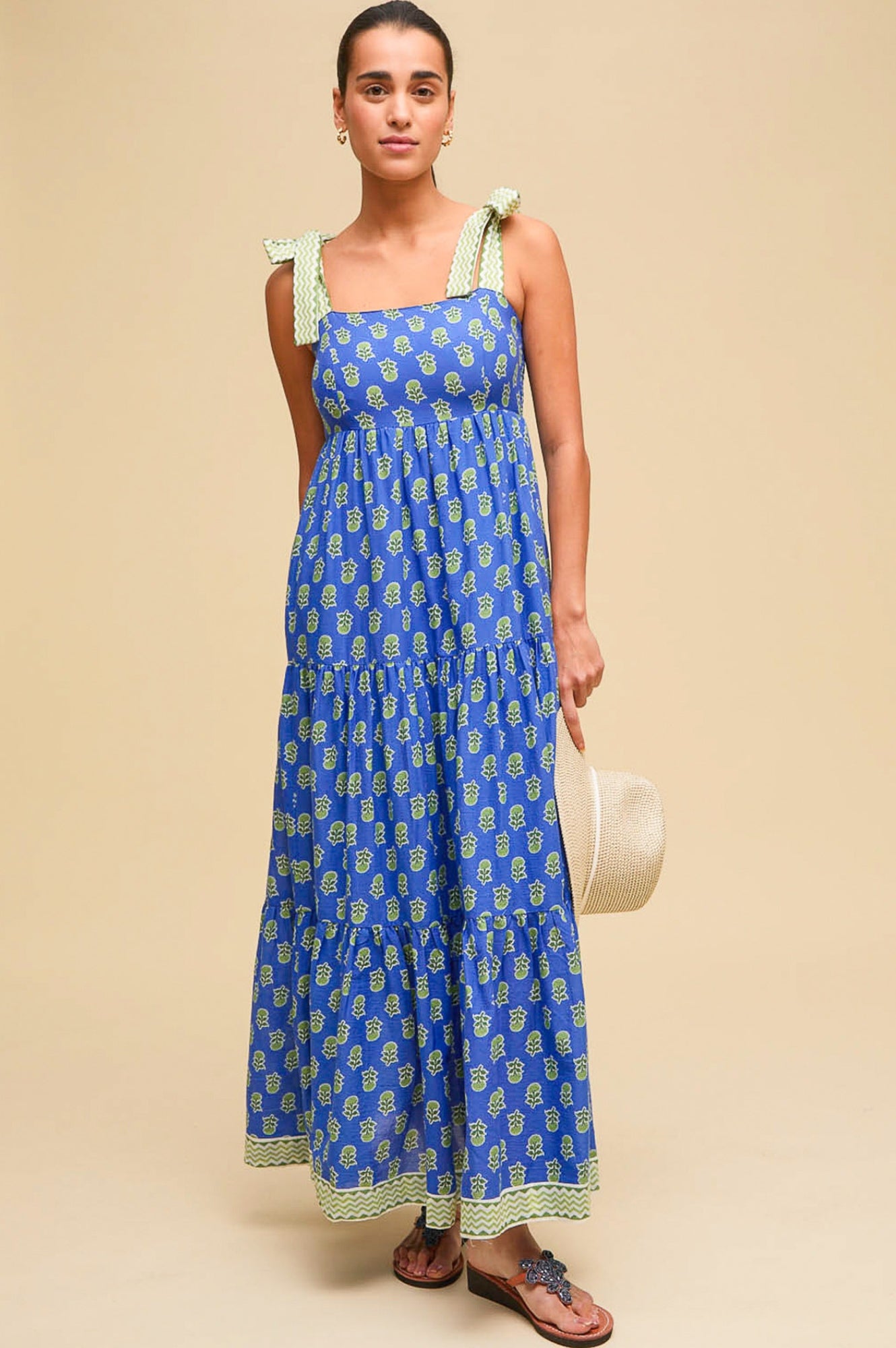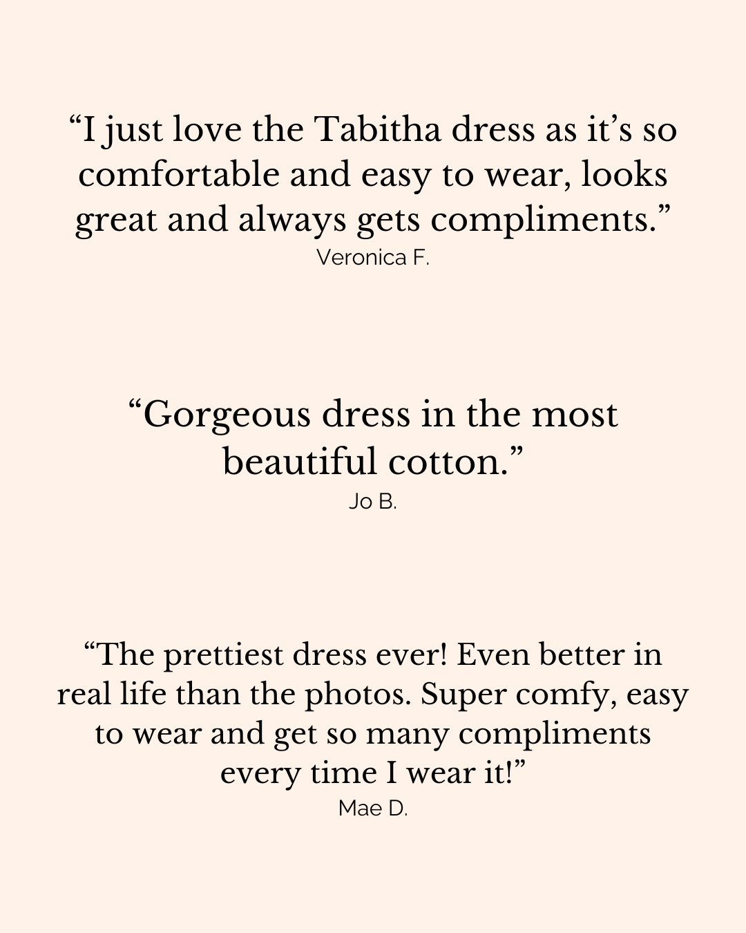 The perfect elevated sundress, our best-selling Tabitha dress is crafted from lightweight organic cotton. With wide tie shoulder straps in a contrast print, Tabitha is a full maxi, flattering all shapes with a fixed bodice and shirred back panel and a long fit and flare skirt flowing from under the bust. A contrast hem completes the look.