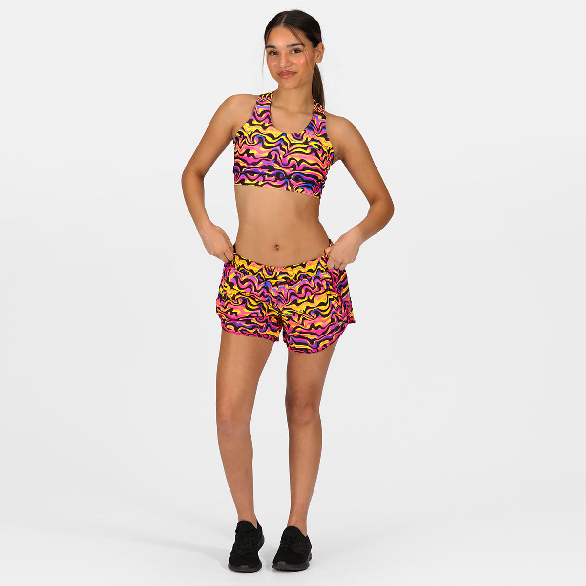 Inspired by the tranquil beauty of a sunset over the ocean, these shorts are a testament to relaxation and rejuvenation. The mesmerizing blend of pink, coral, and blue hues creates a striking visual effect, reminiscent of the shifting colours of the horizon at twilight. Designed with a loose, airy fit and an elastic waistband for maximum comfort and flexibility, these shorts are perfect for everything from yoga sessions to leisurely strolls along the beach.
