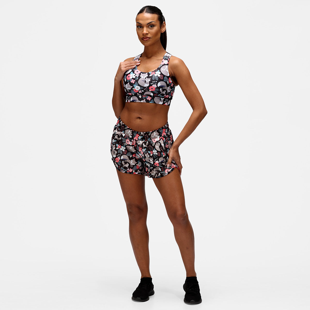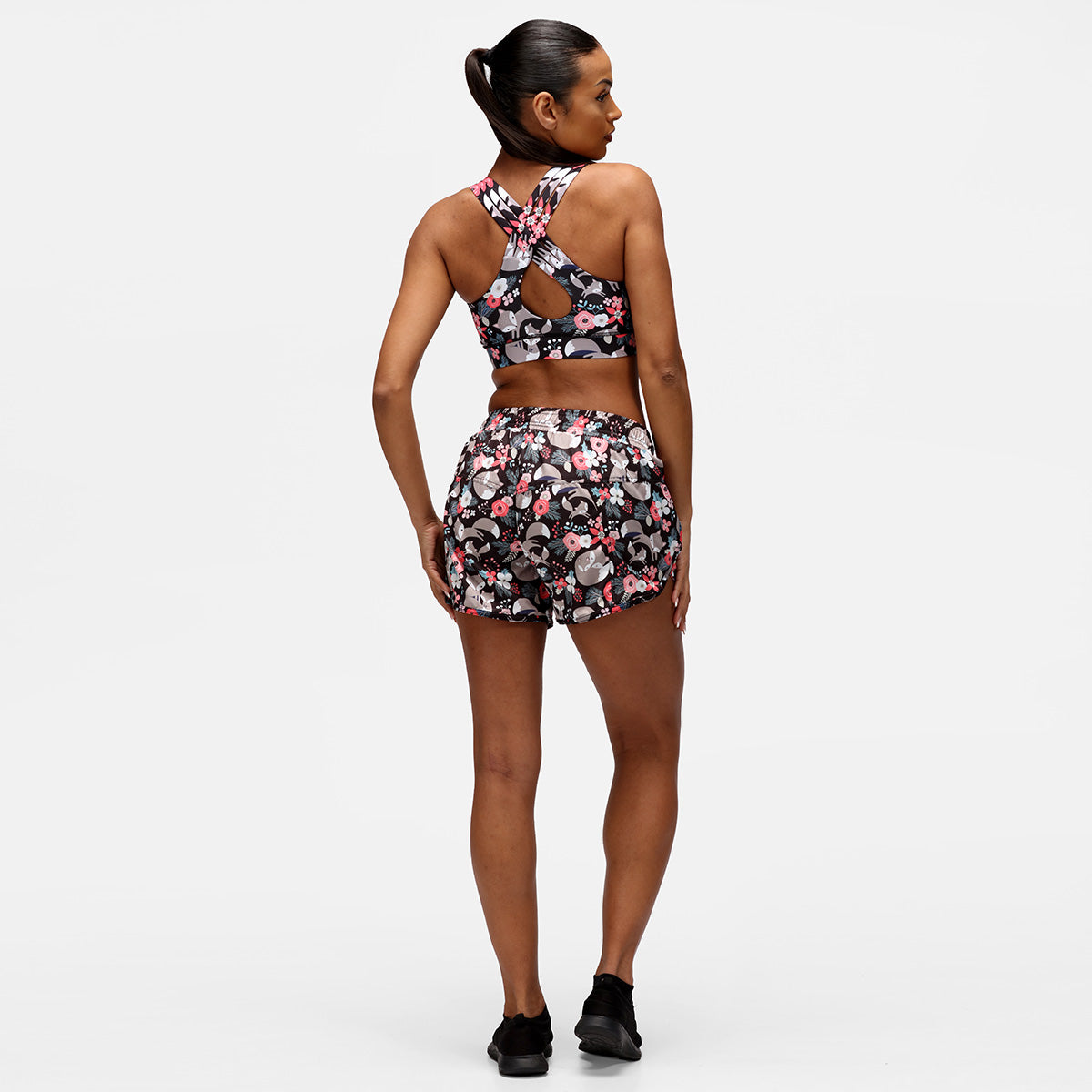 The black background adorned with graceful grey foxes and charming white and pink florals makes these shorts a fashion-forward novelty choice for your active lifestyle.