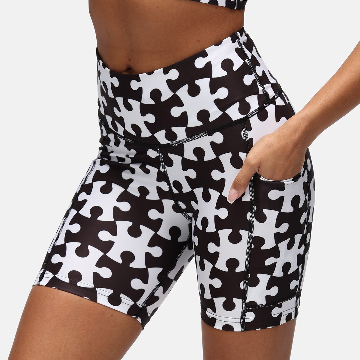 These shorts combine the best of style and functionality, making them perfect for your daily run or a quick sprint at the track. The puzzle-inspired pattern adds a dash of intrigue to your athletic endeavors.
