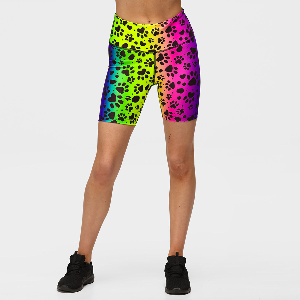 These shorts feature a vibrant neon colour palette and cute black paw prints that will make your runs more enjoyable. The moisture-wicking fabric keeps you dry, while the elastic waistband ensures a secure fit during your most intense workouts.
