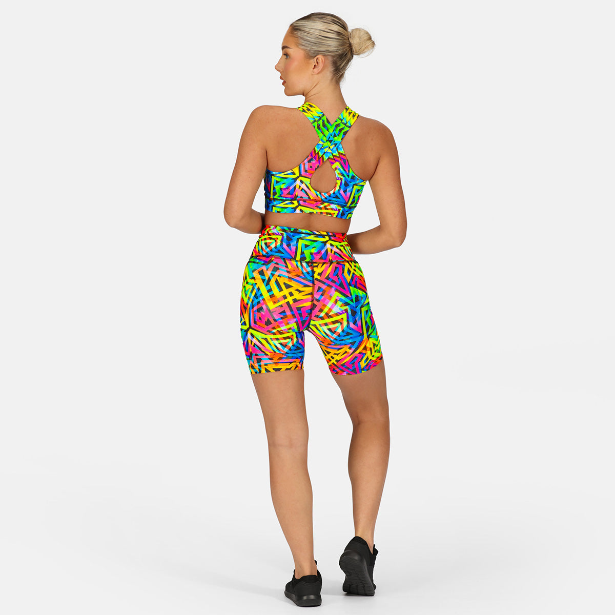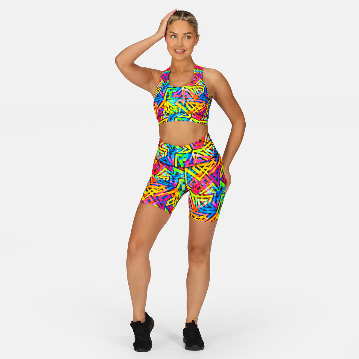 Neon hues dance across geometric shapes, creating a visual feast for the active eye. Experience the perfect blend of style and functionality as you clock up the miles.
