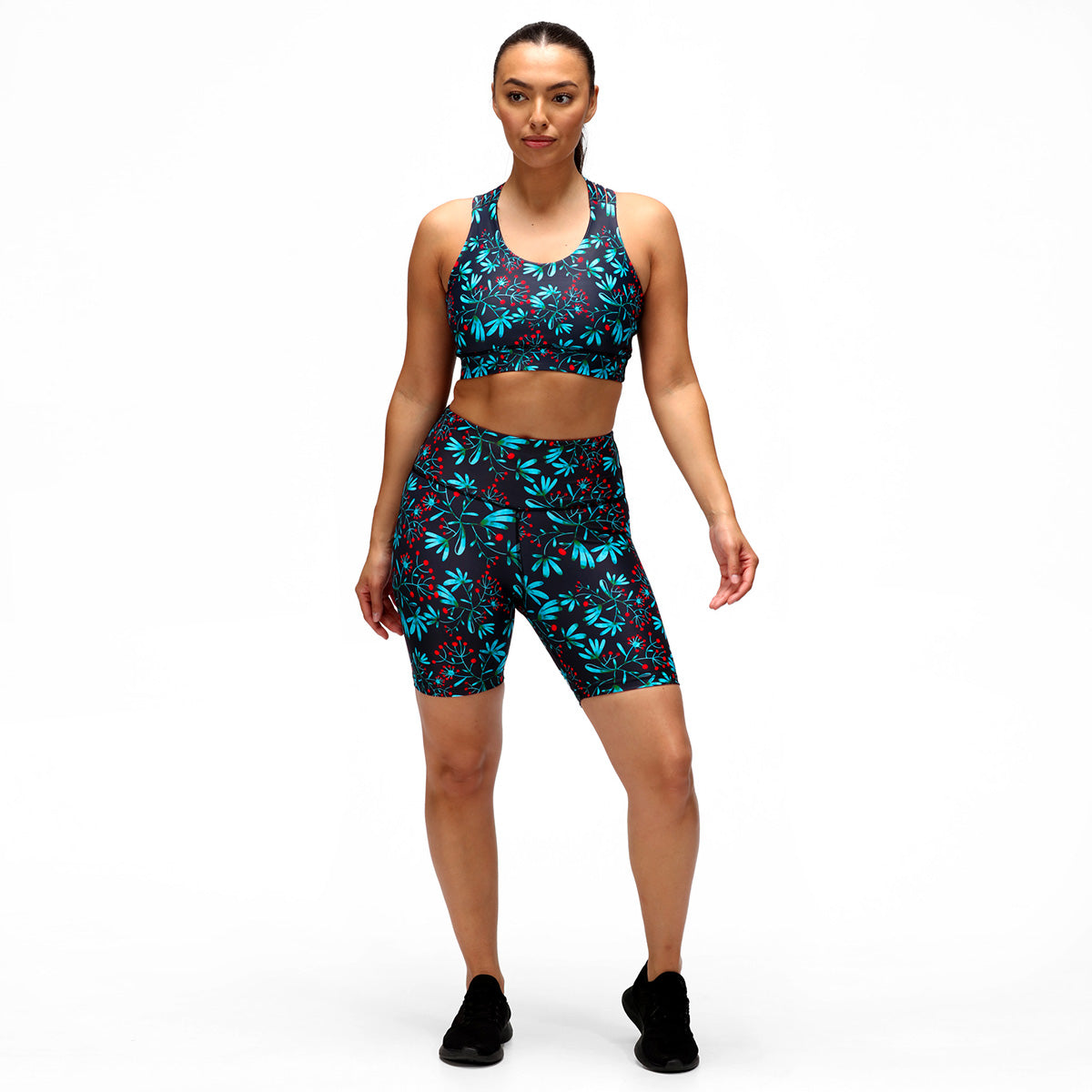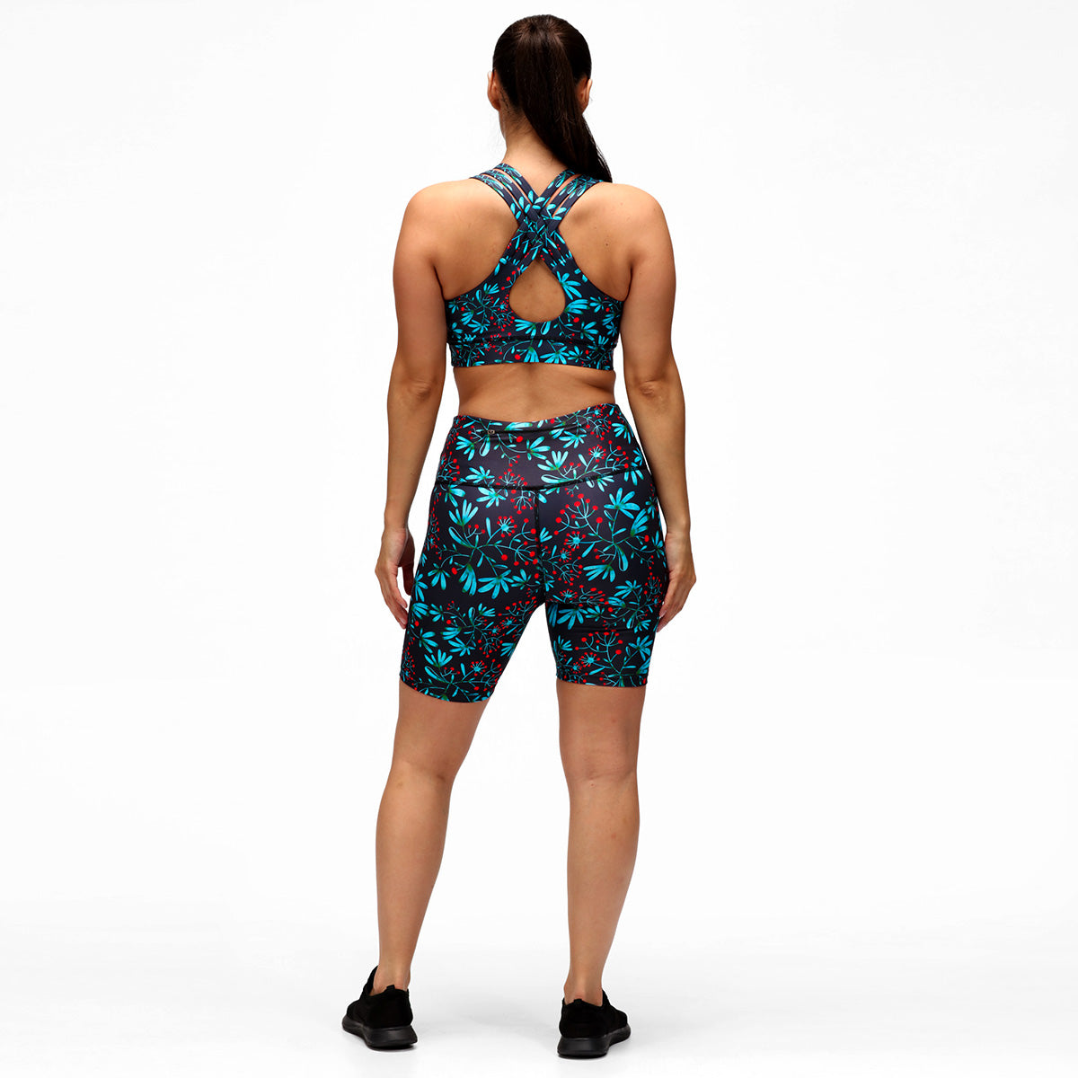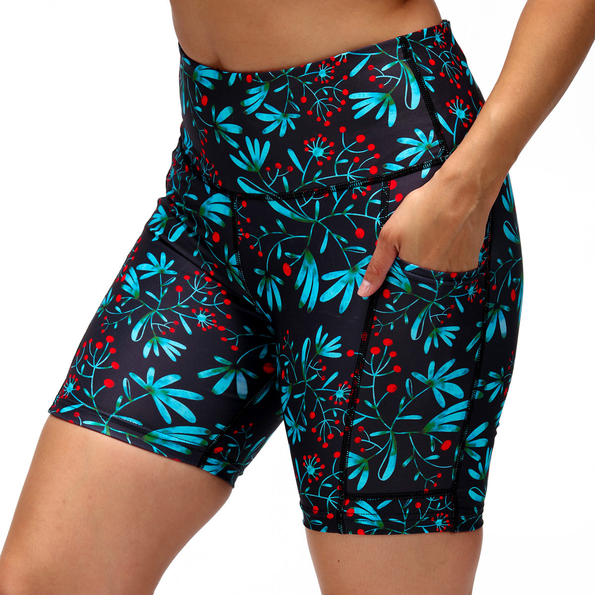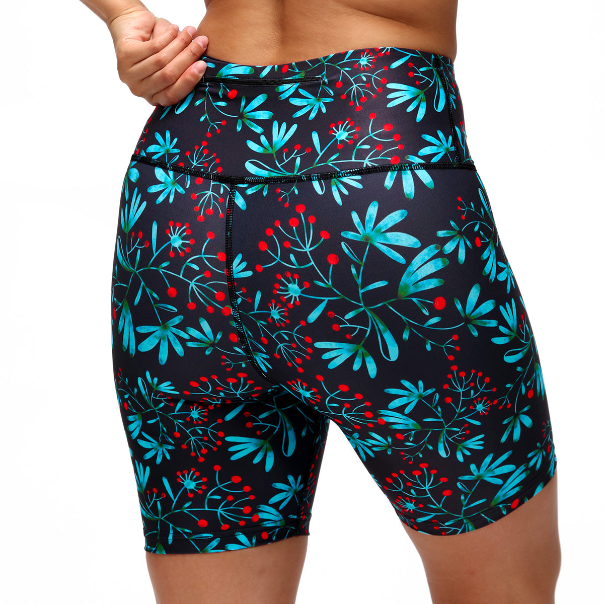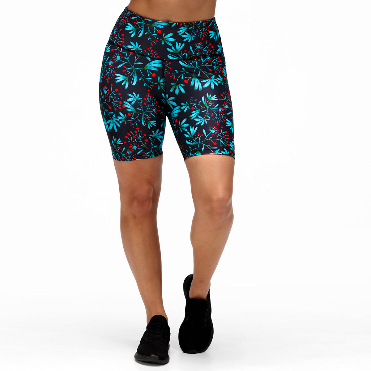 Stay on the move with our Winter Berries Running Shorts, the perfect combination of fashion and functionality. Featuring a navy blue background and charming blue and green leaves embellished with red berries, these shorts will add a touch of winter magic to your runs. Designed for maximum comfort and breathability, they'll keep you looking and feeling great, mile after mile.