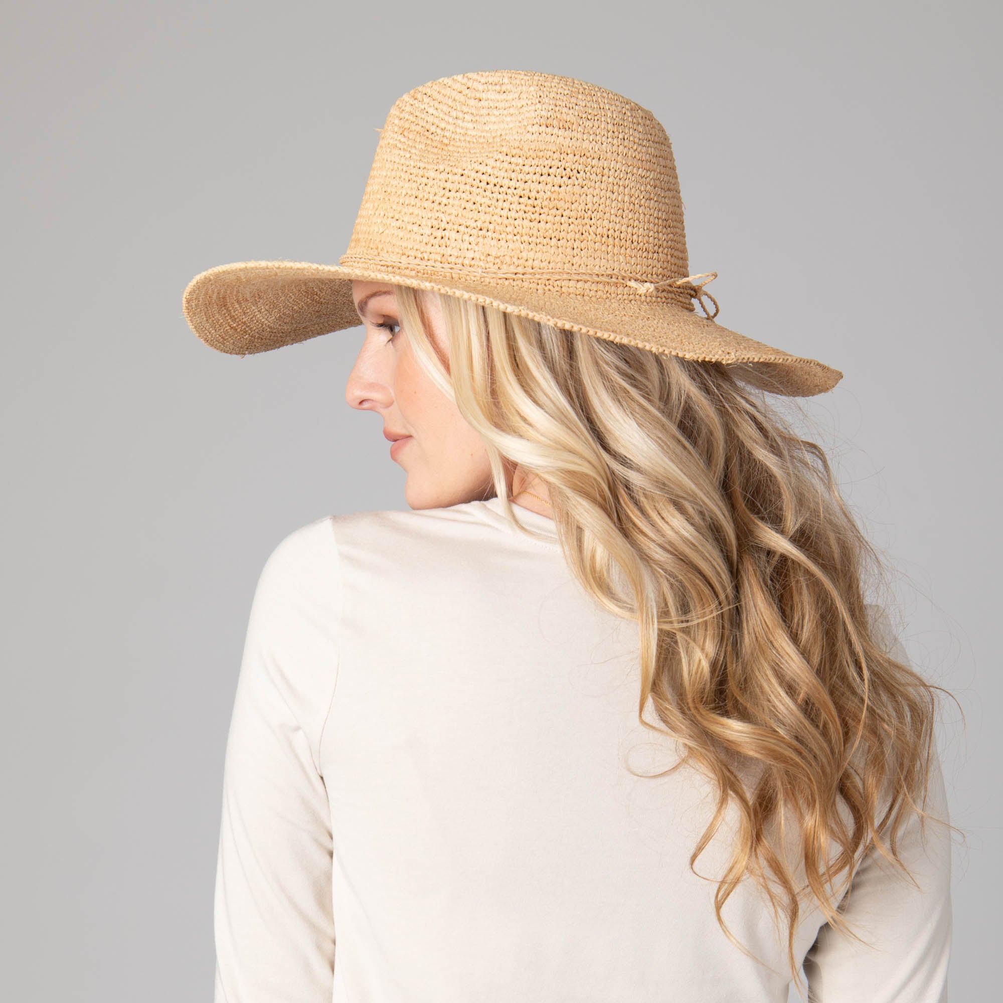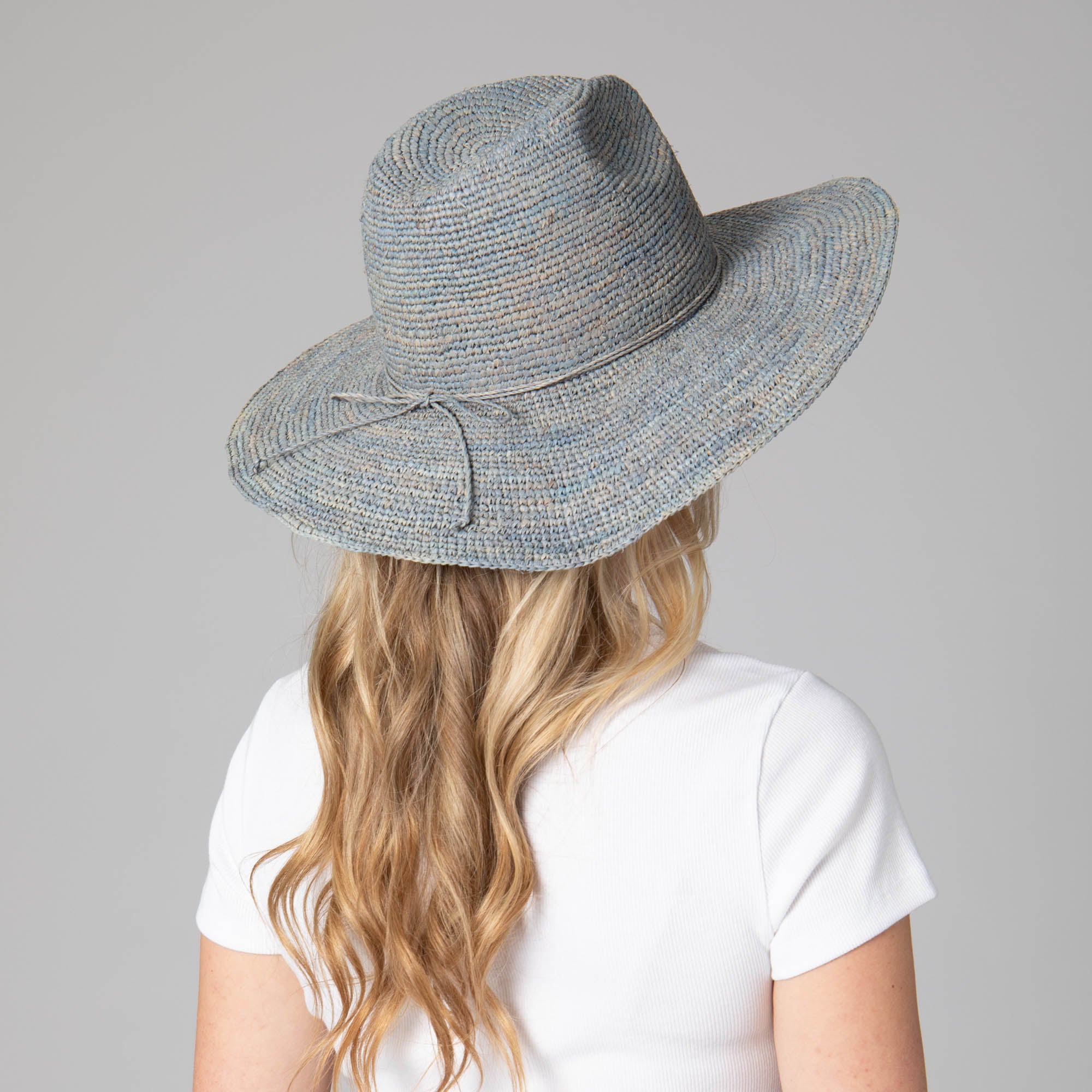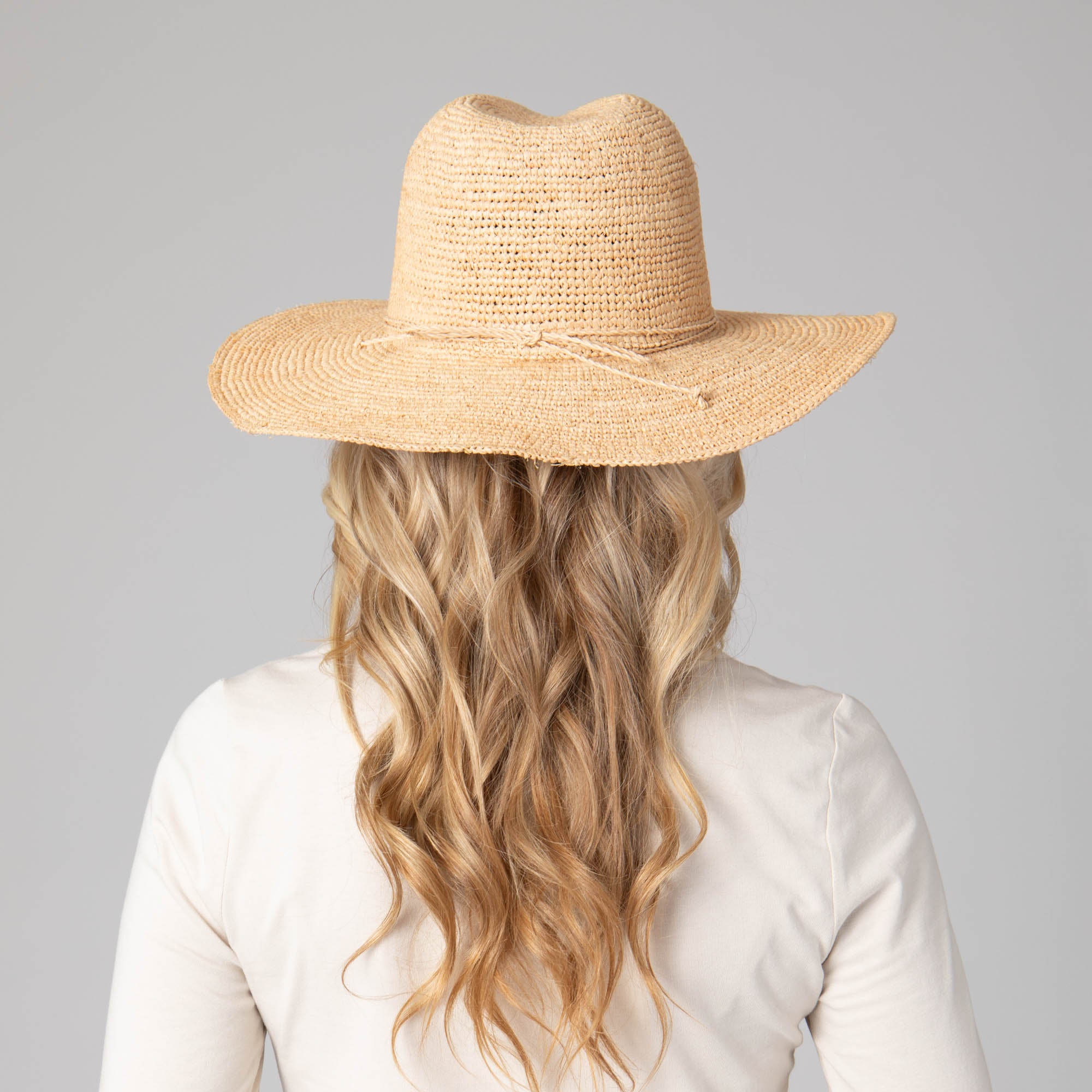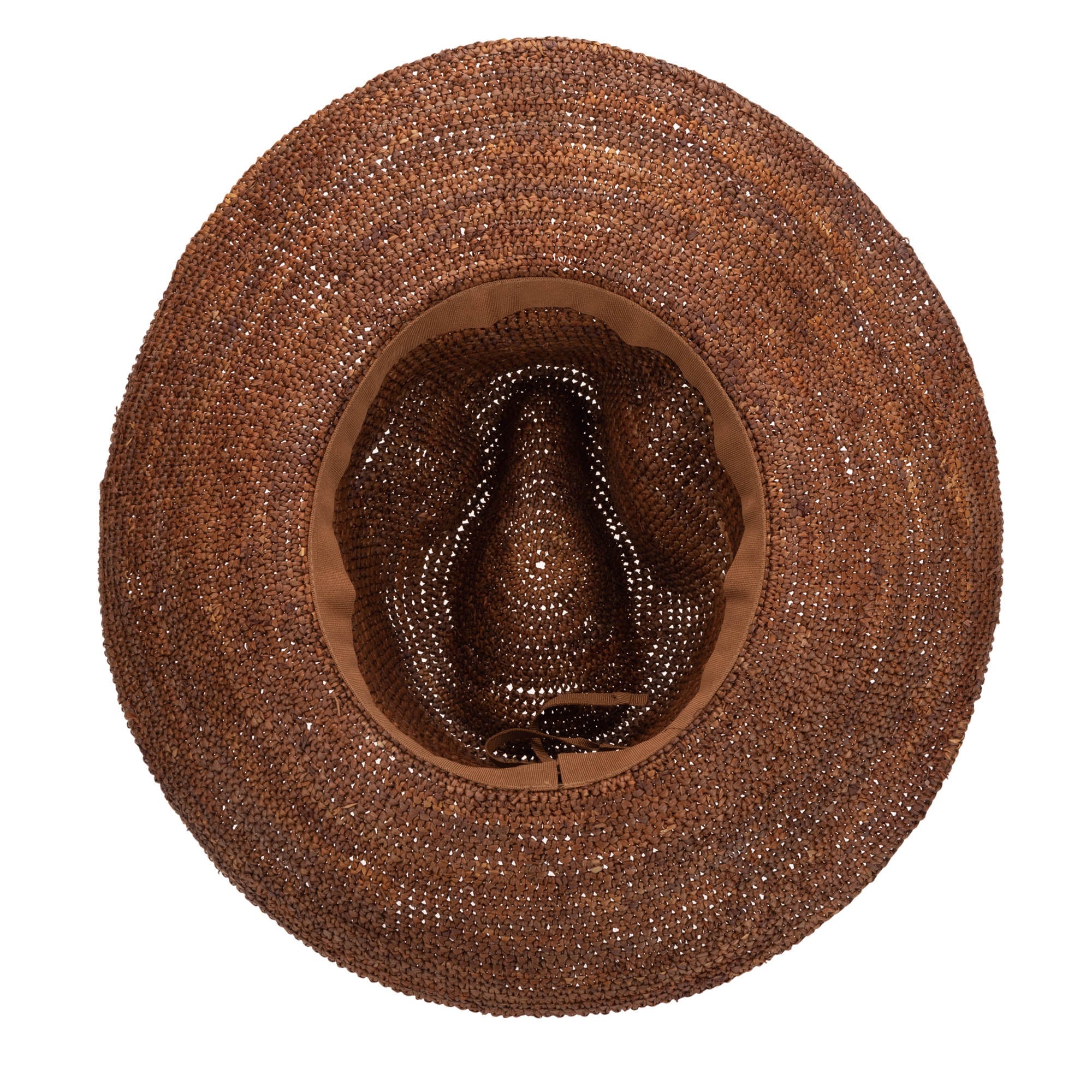 Be ready for any outdoor occasion in style with the Marina Women's Crochet Raffia Fedora. This exquisite fedora is crafted with 100% Crochet Raffia and features a 4' brim and adjustable size to fit perfectly. Choose between a brown, blue, or natural hue with the unique addition of twisted cording and bow in the center back. Elevate your ensemble and be the talk of the town in this one of a kind fedora.