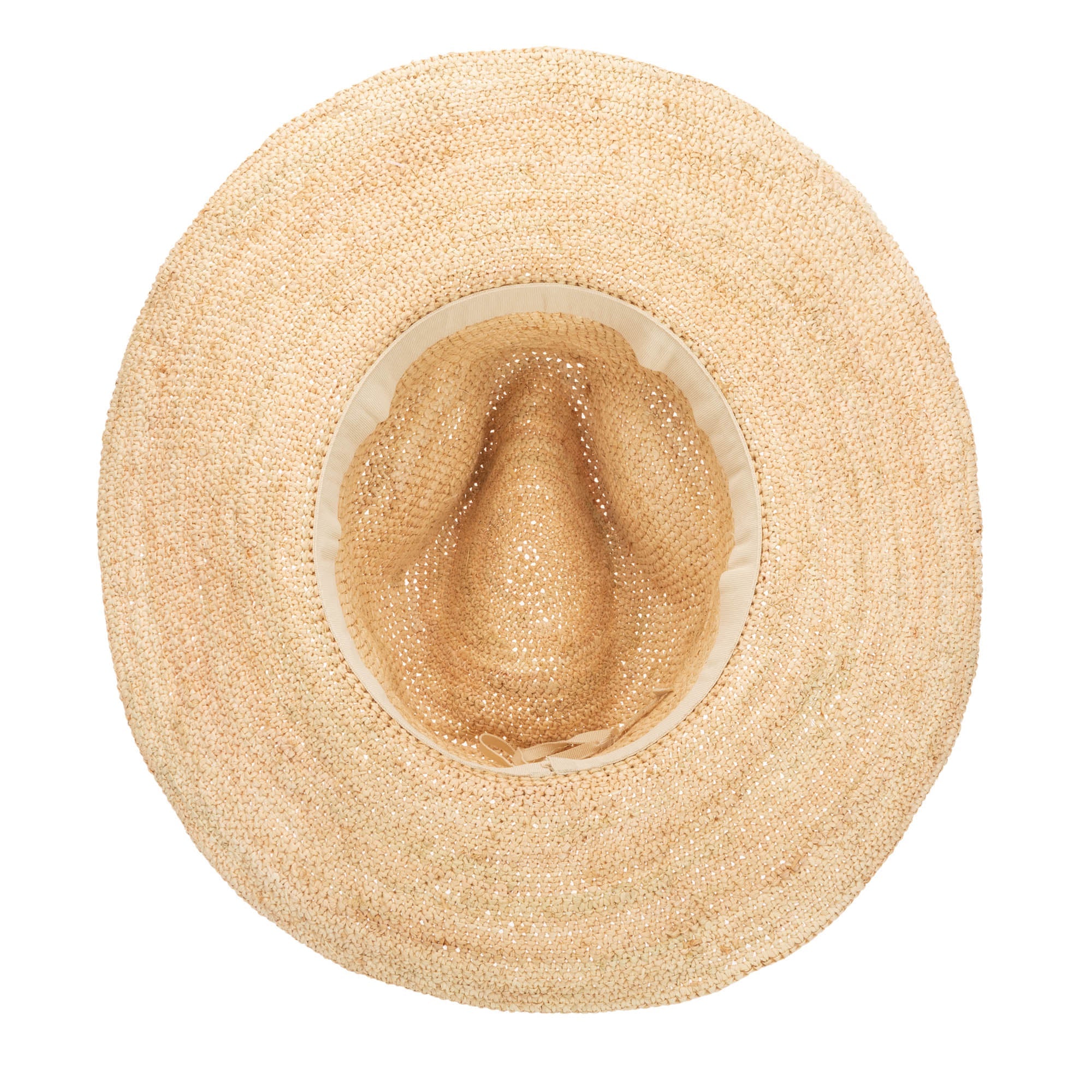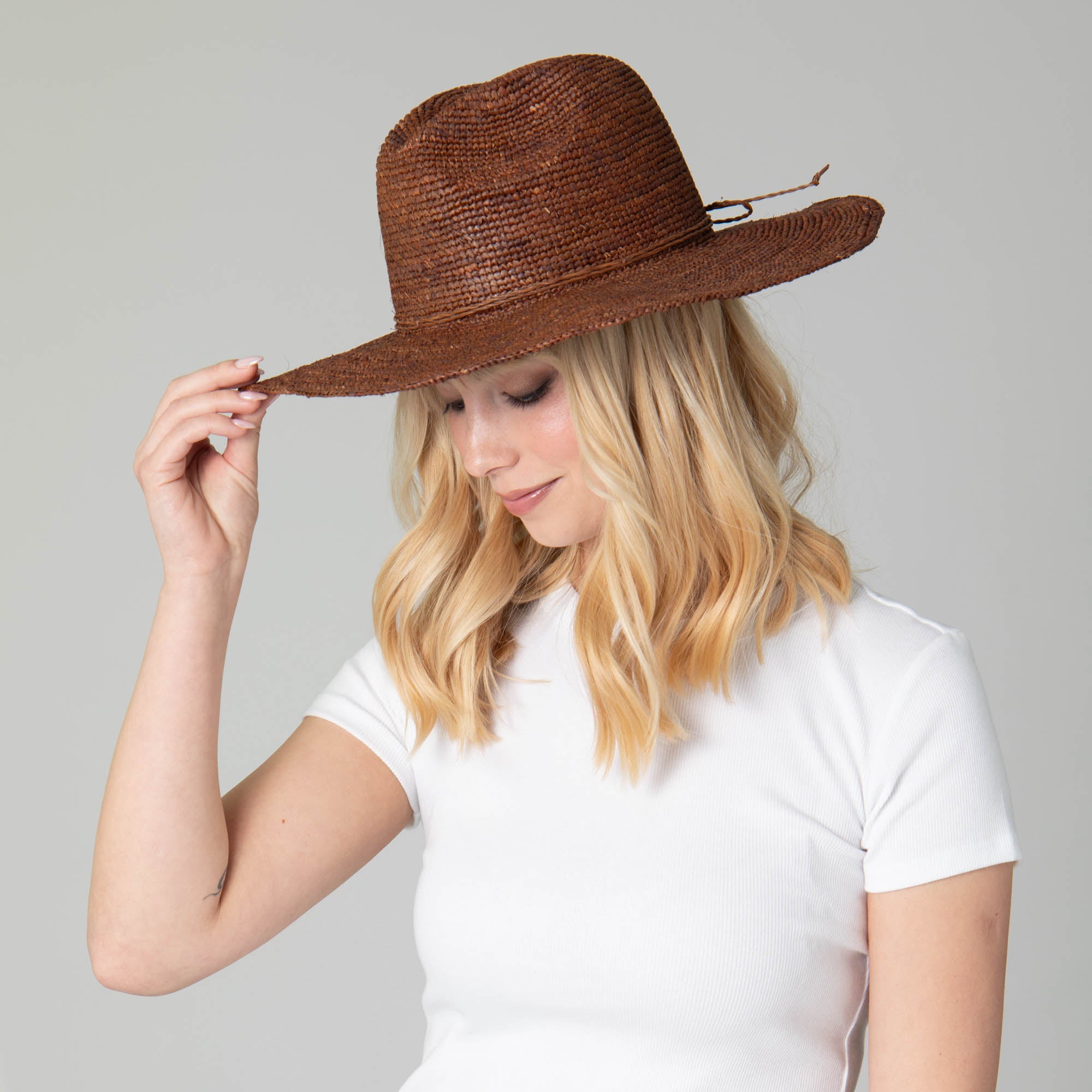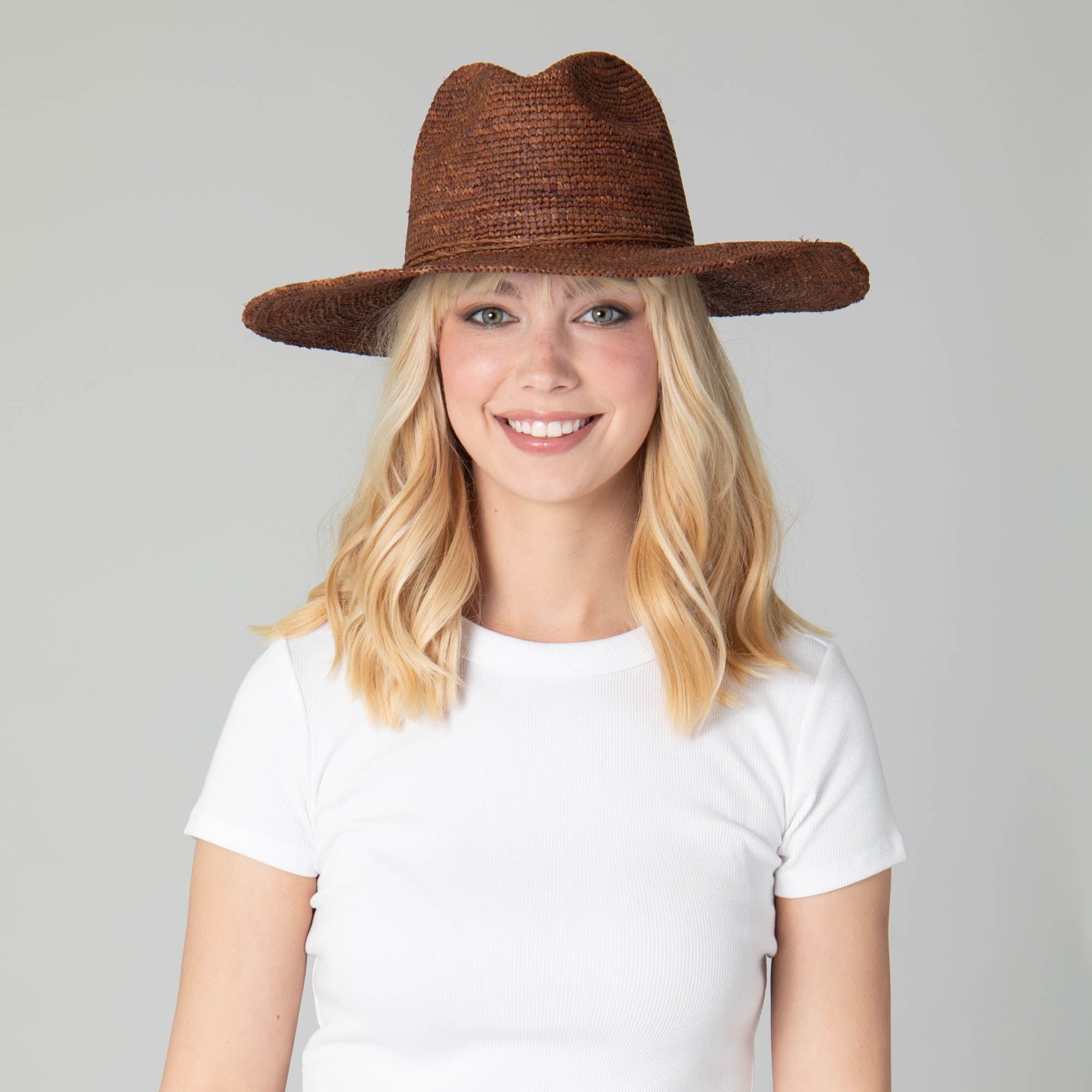 Be ready for any outdoor occasion in style with the Marina Women's Crochet Raffia Fedora. This exquisite fedora is crafted with 100% Crochet Raffia and features a 4' brim and adjustable size to fit perfectly. Choose between a brown, blue, or natural hue with the unique addition of twisted cording and bow in the center back. Elevate your ensemble and be the talk of the town in this one of a kind fedora.