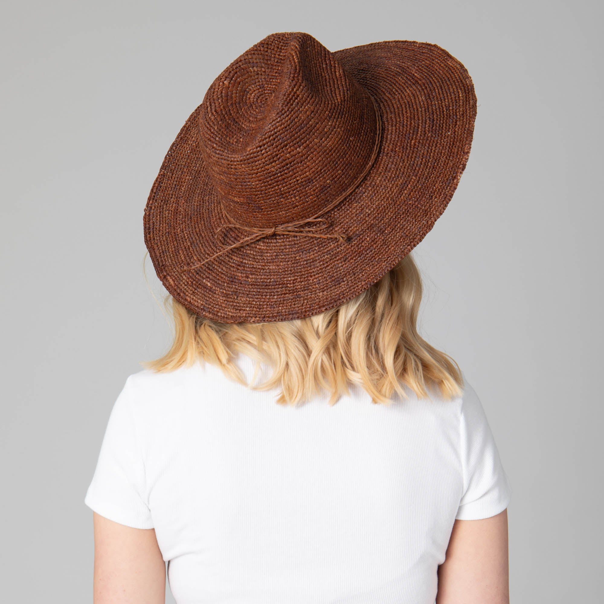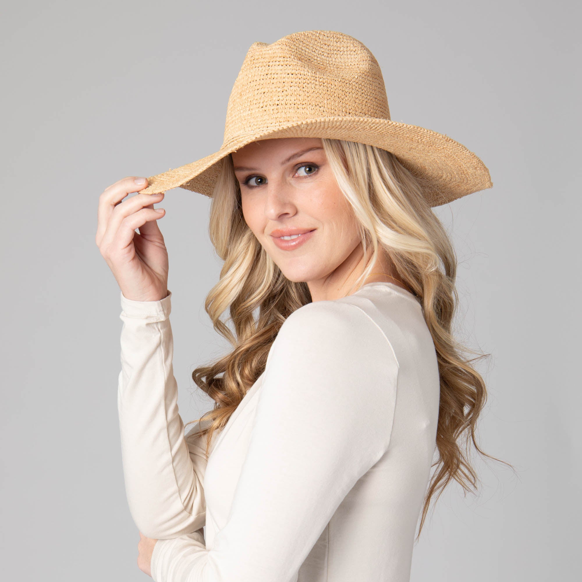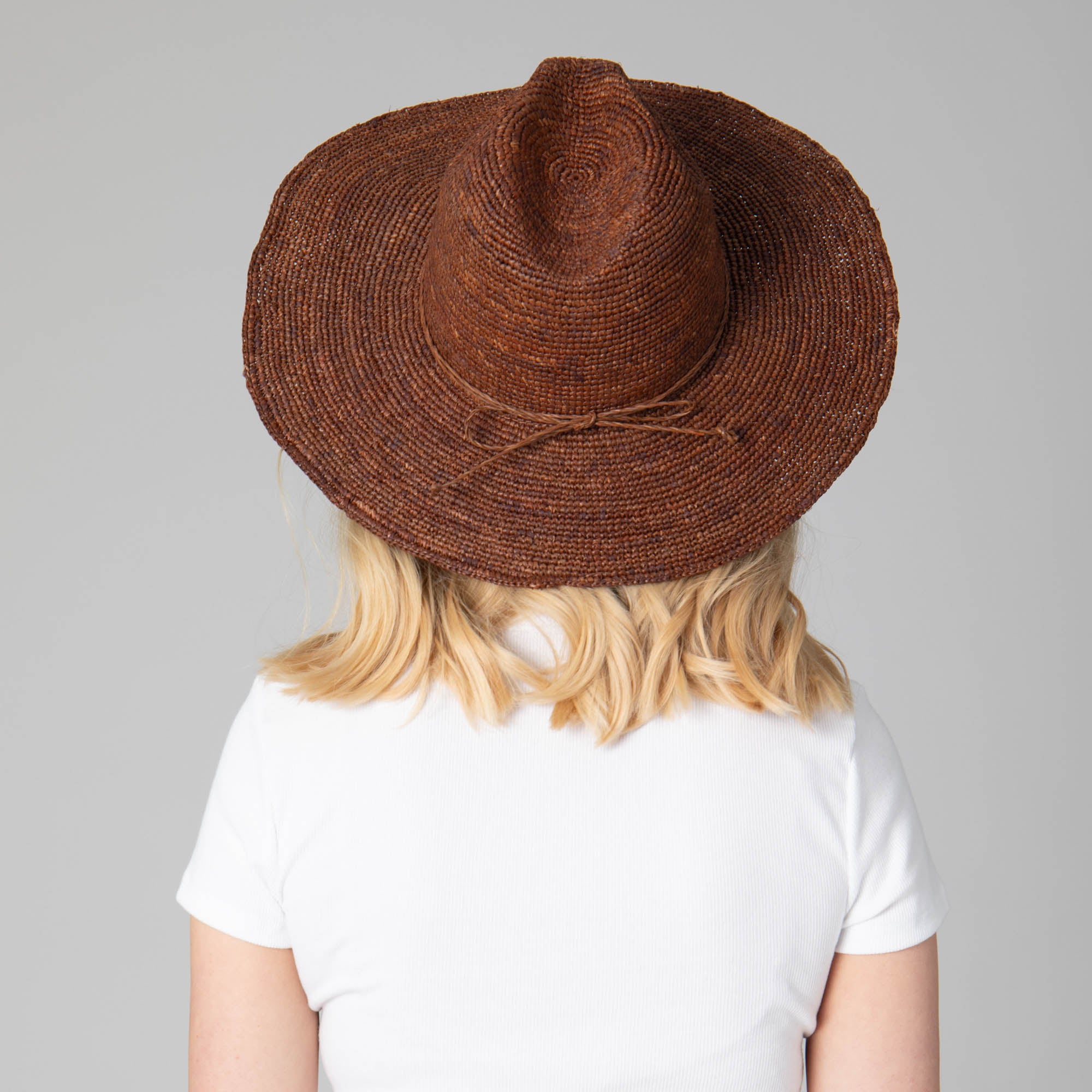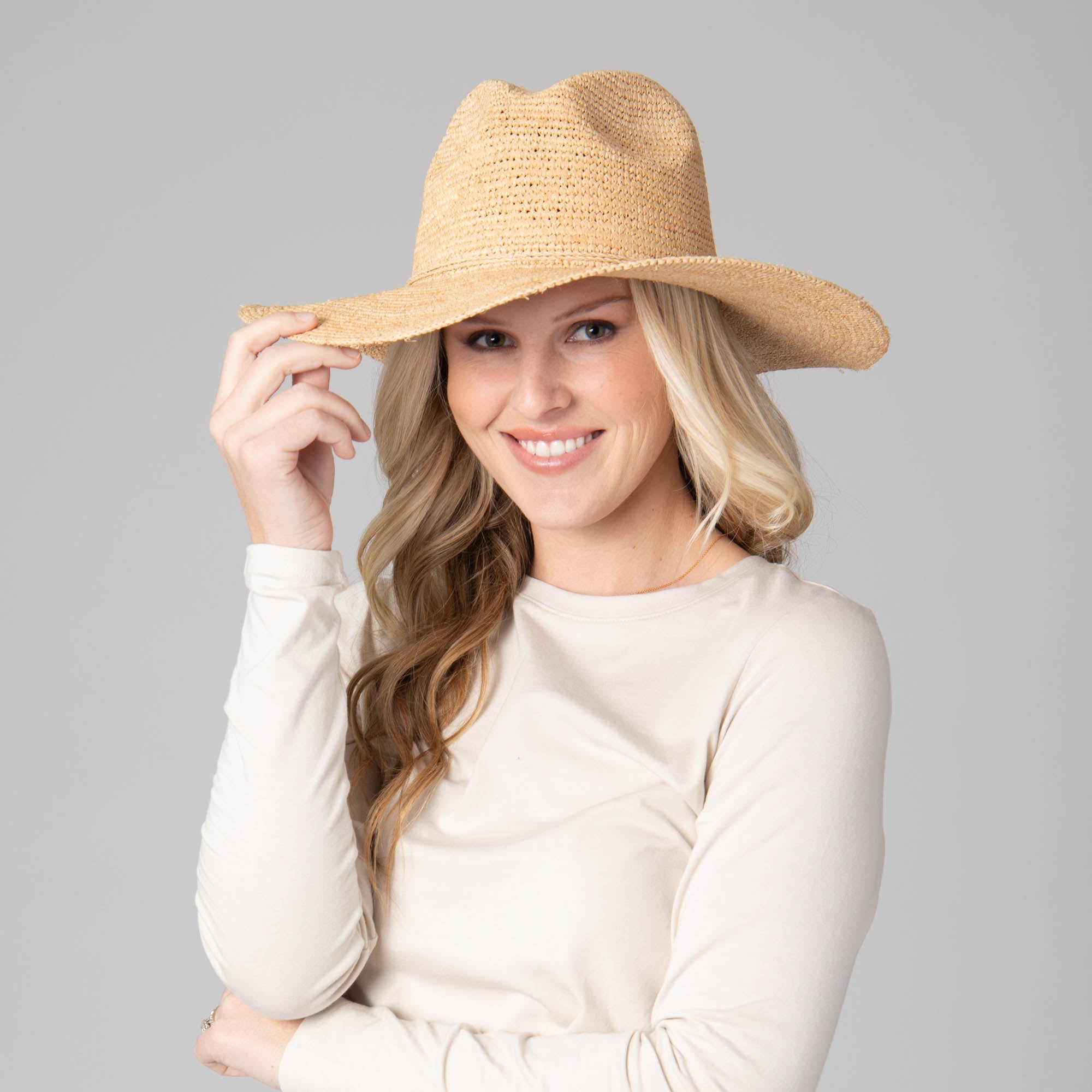 Be ready for any outdoor occasion in style with the Marina Women's Crochet Raffia Fedora. This exquisite fedora is crafted with 100% Crochet Raffia and features a 4' brim and adjustable size to fit perfectly. Choose between a brown, blue, or natural hue with the unique addition of twisted cording and bow in the center back. Elevate your ensemble and be the talk of the town in this one of a kind fedora.