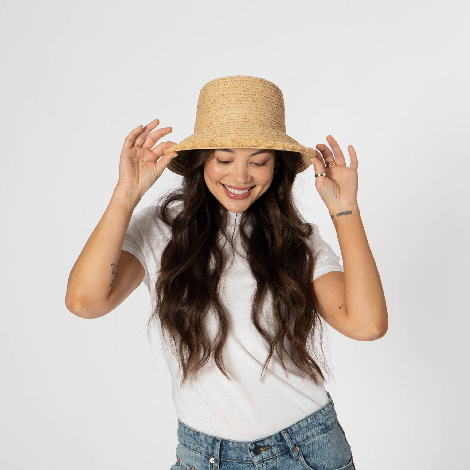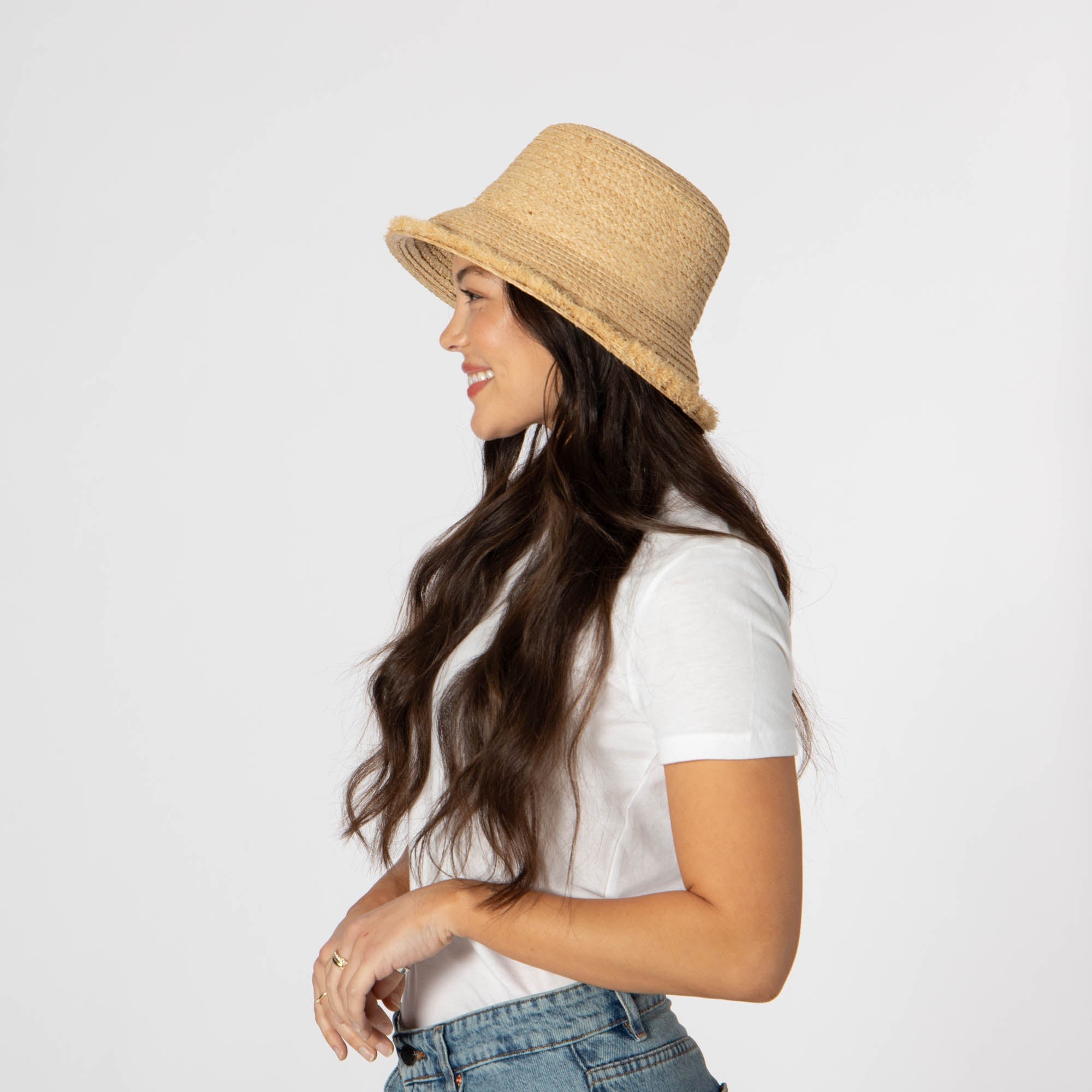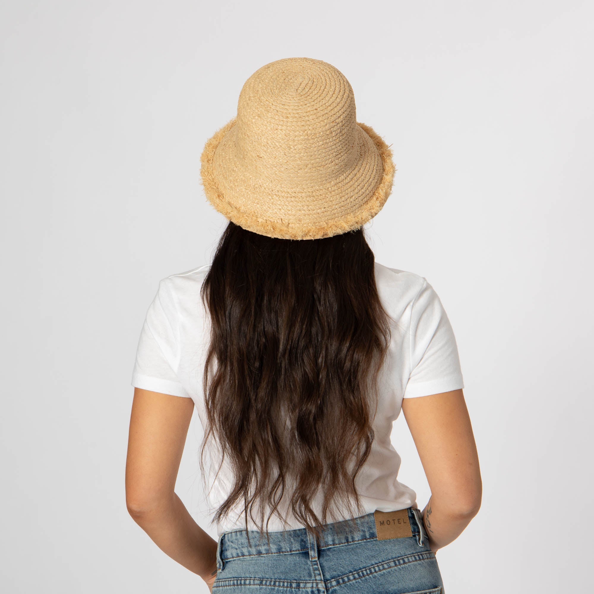 Get ready to become the ultimate trendsetter with the Palmera Fringe Bucket Hat! Made with 100% Raffia, this unique hat features a raffia braid and playful fringe, adding a touch of fun to your outfit. With an adjustable fit and a 3.25' brim size, you'll stay stylish and shaded all day long.