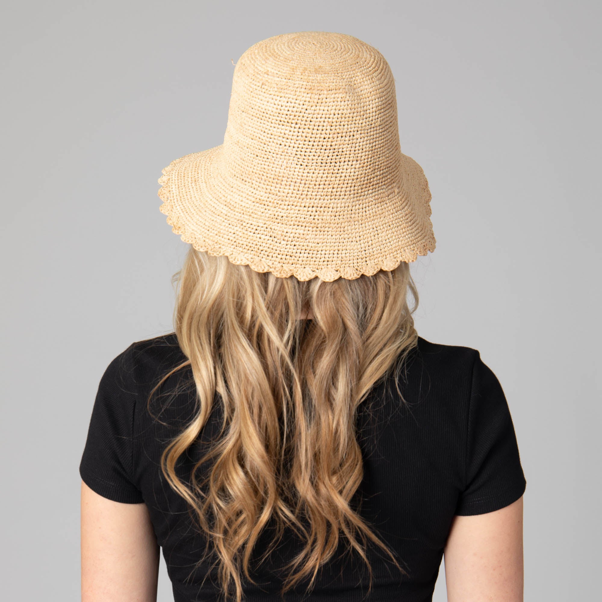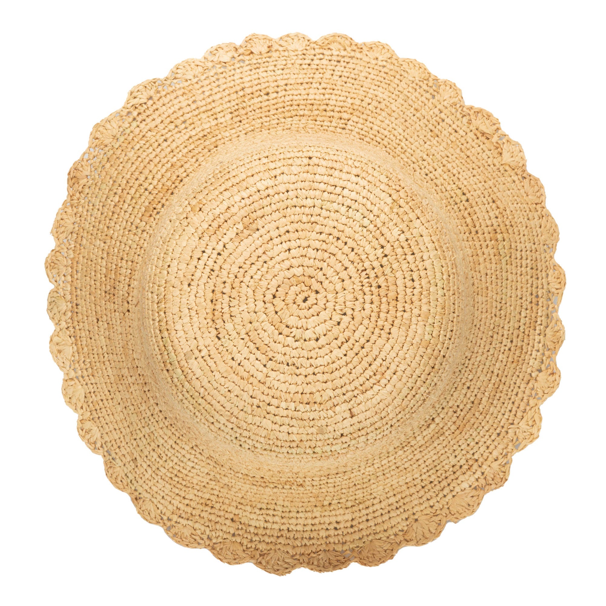 This Sand Dollar Hand Crochet Bucket Hat is crafted from 100% raffia and features a 3.5' scalloped brim for a timeless look. An adjustable fit of 57cm ensures comfortable wear for a variety of head sizes. Whether you're out for a picnic or a day at the beach, you'll look stylish and feel comfortable in this natural design.