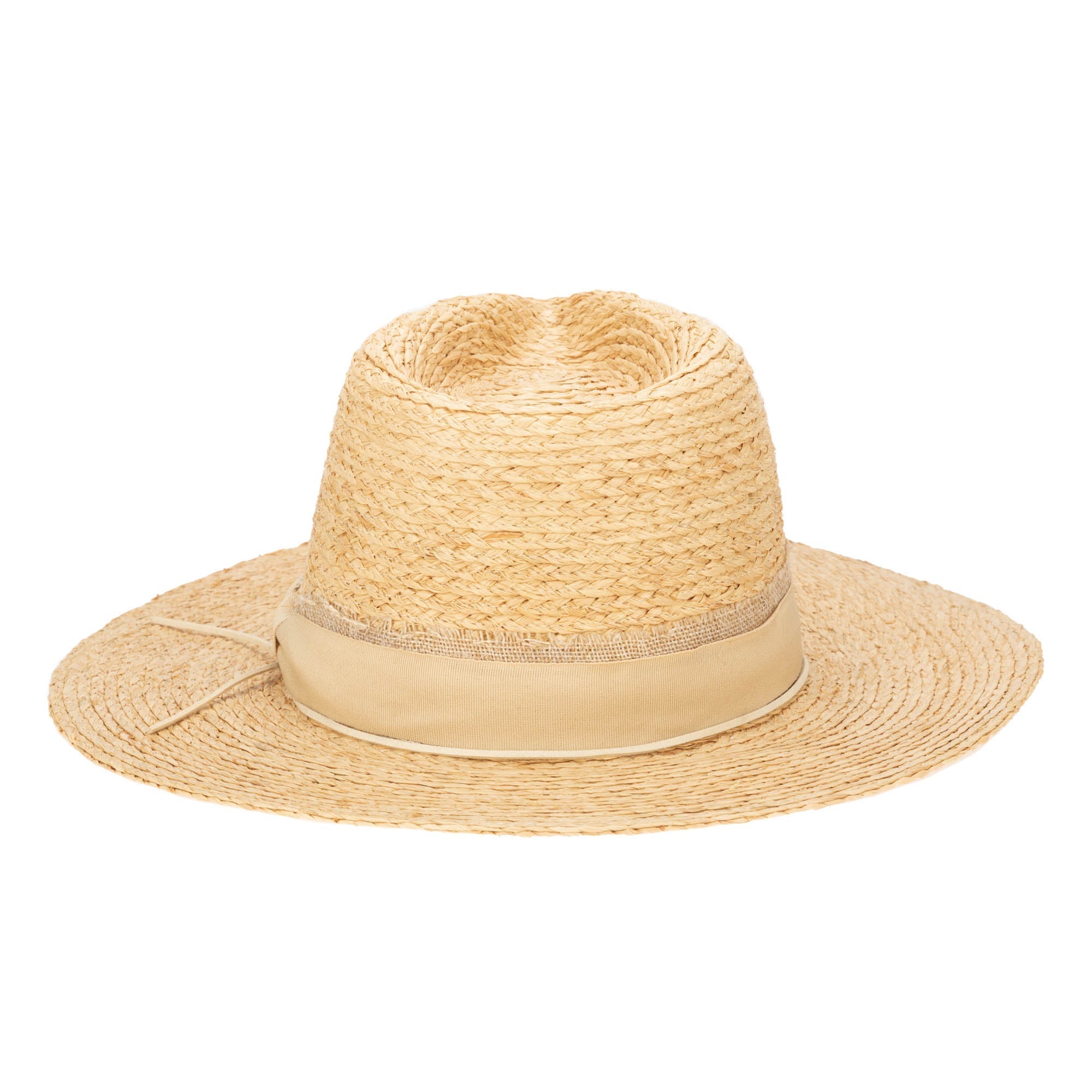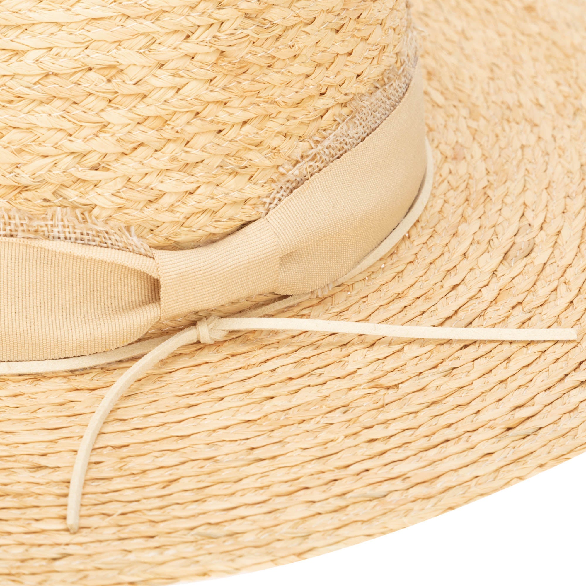 Crafted from 100% natural raffia, this stunning fedora boasts a 3.5' brim size for optimal sun protection. This fedora features layered grosgrain, frayed burlap and faux suede tie.�It's designed in a women's one size (57cm) and features an adjustable fit for your ultimate comfort. With UPF 50, you can enjoy the sun in style while keeping your skin protected.