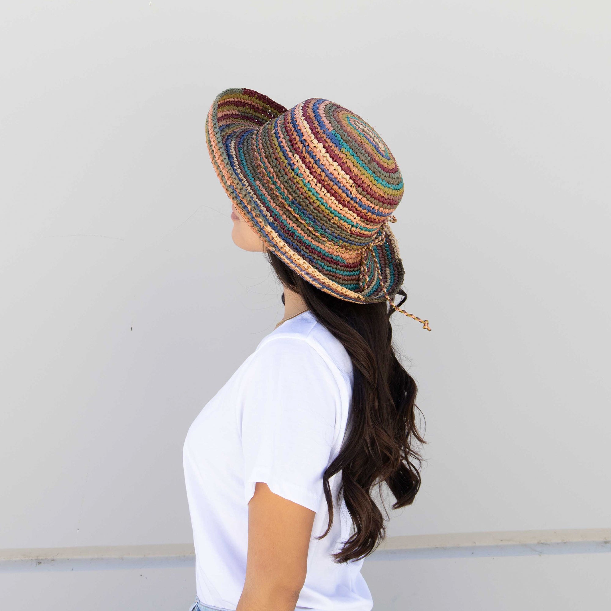 Lightweight and colorful, these crocheted hats are ready to protect at out on the town or at the beach. Available in a variety of colors, this 100% raffia kettle brim hat will match any look in the sun!