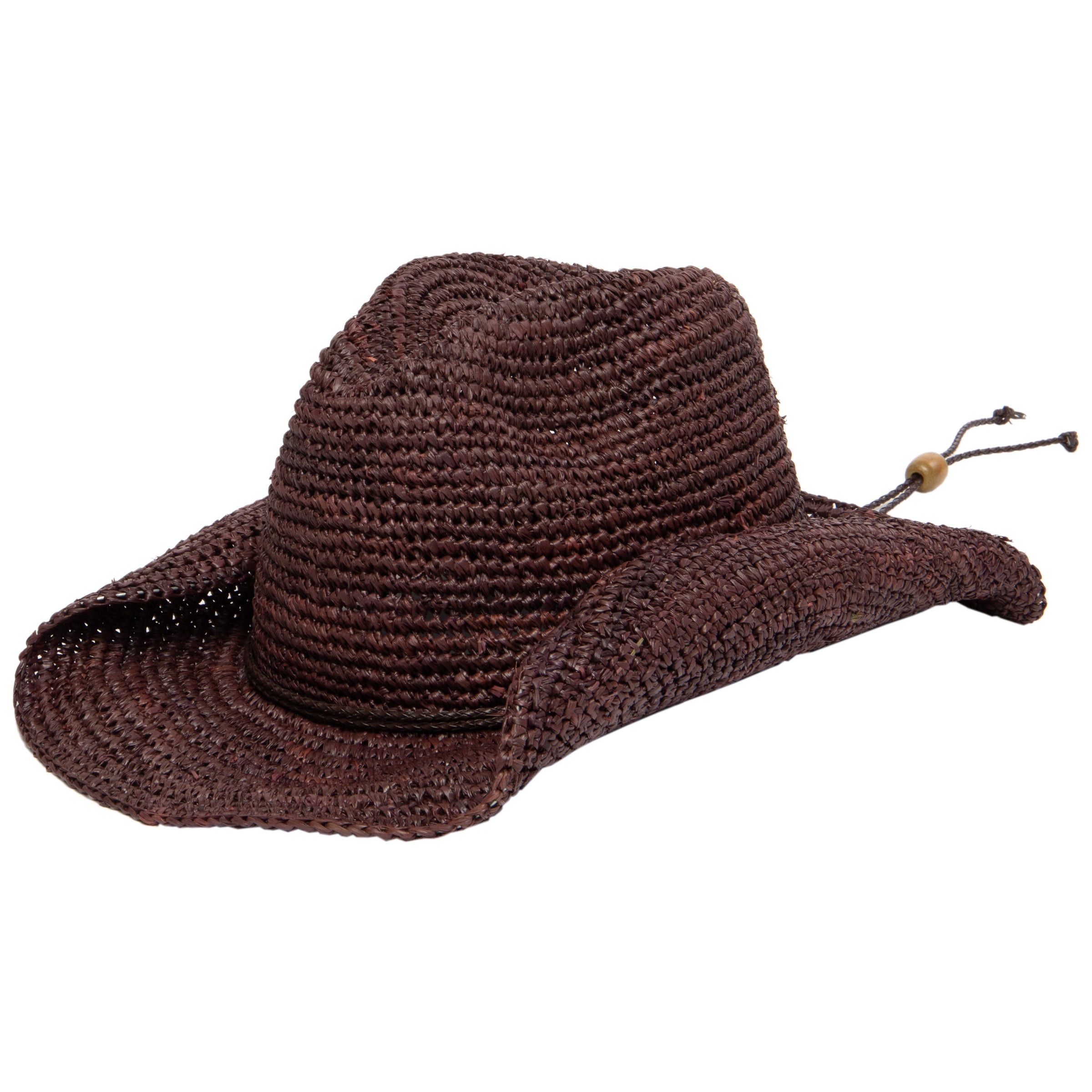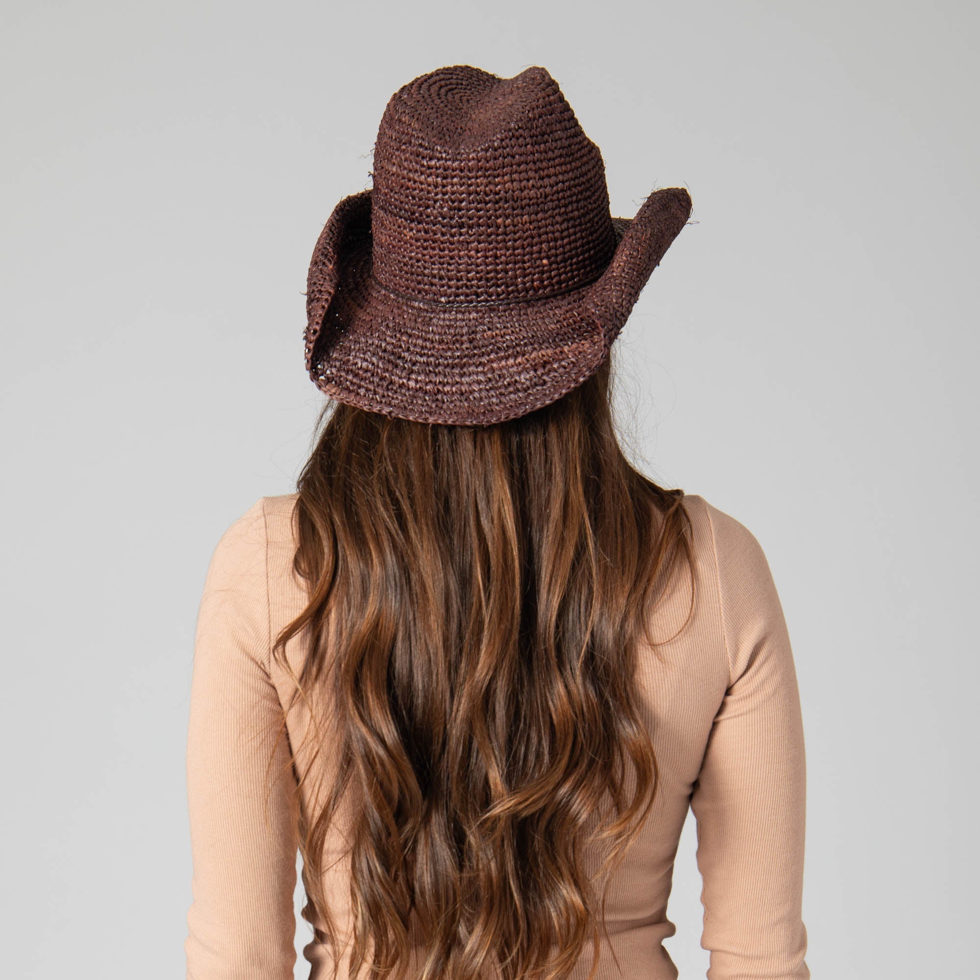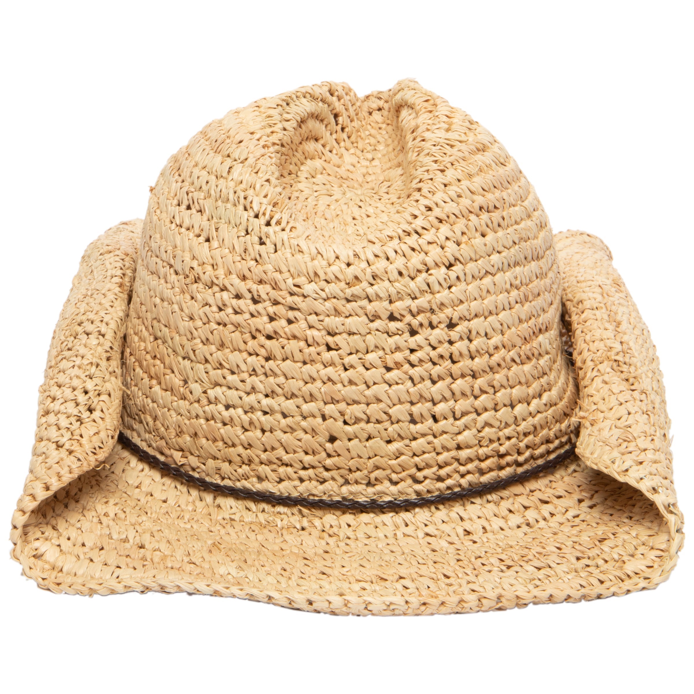 You don��t have to be a real cowgirl to wear this piece! Its perfect for any outing and a definite show stopper for any country concert or festival! This crocheted raffia cowboy hat features a 3.25' brim and is made from 100% raffia.