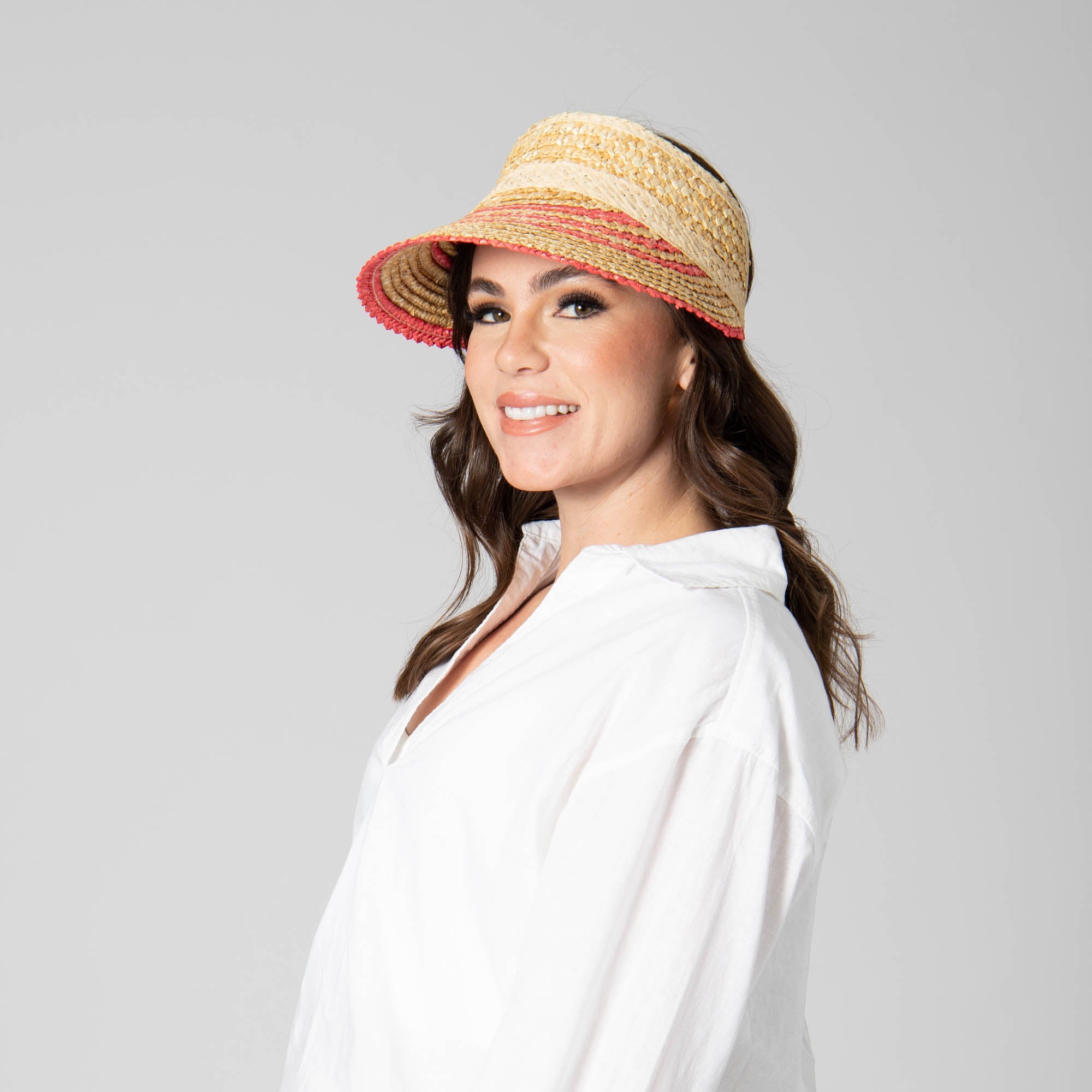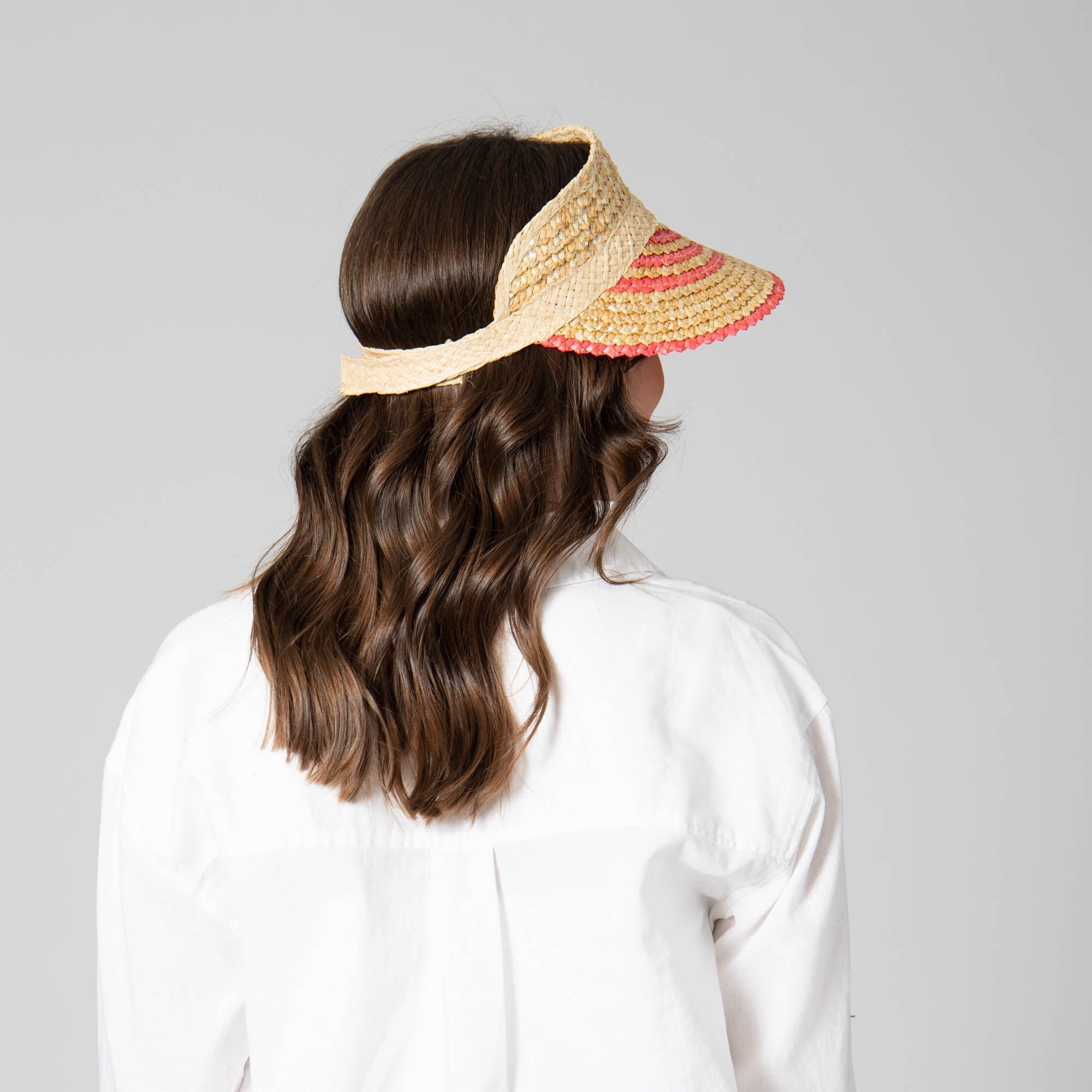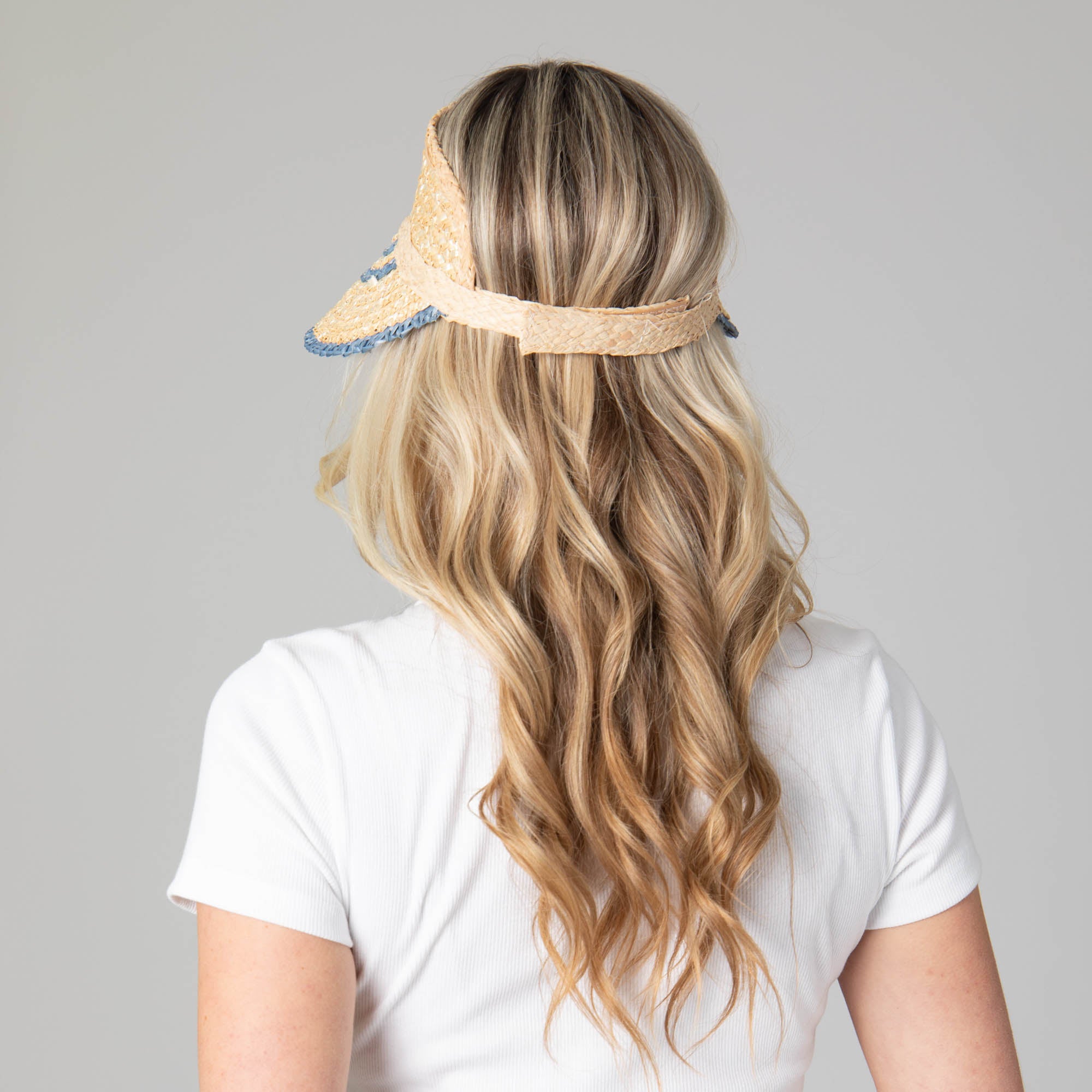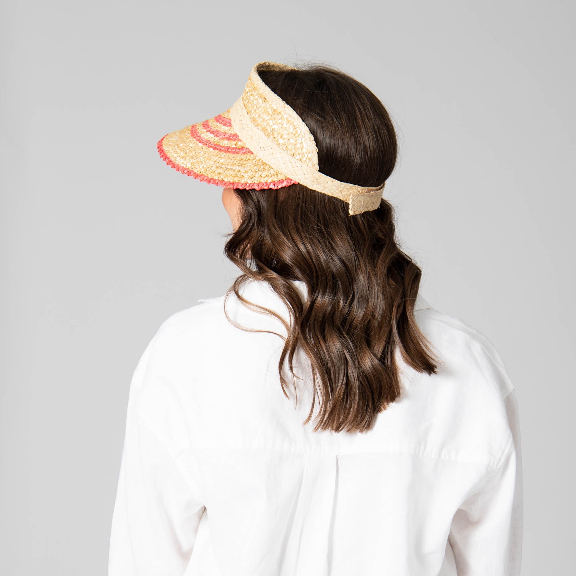 Keep sun, sweat, and hair out of your eyes with our textured wheat straw visor. The curved brim offers optimum sun protection for your face and eyes. Complete with a Velcro back closure to maximize your perfect fit. Available in 3 amazing colors.