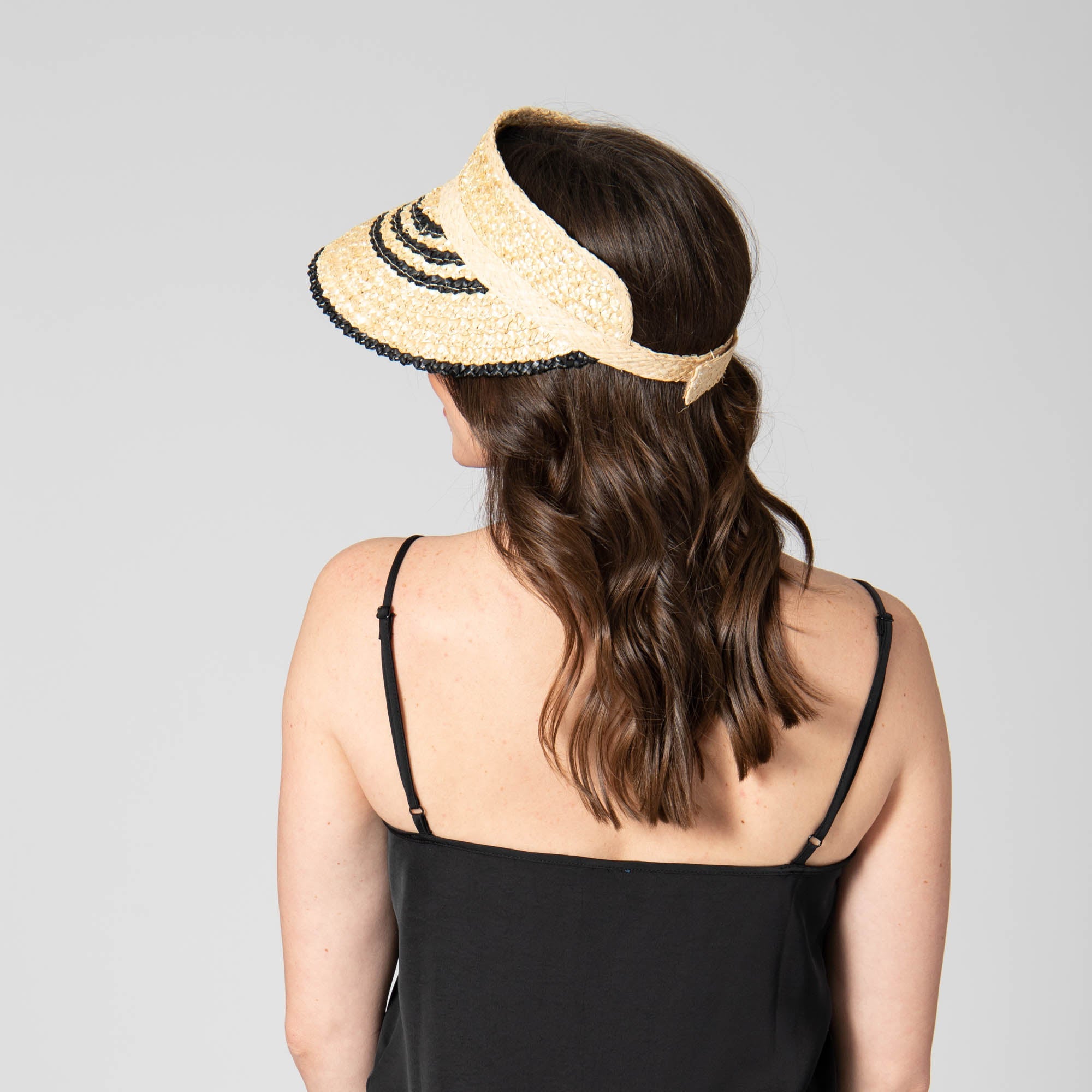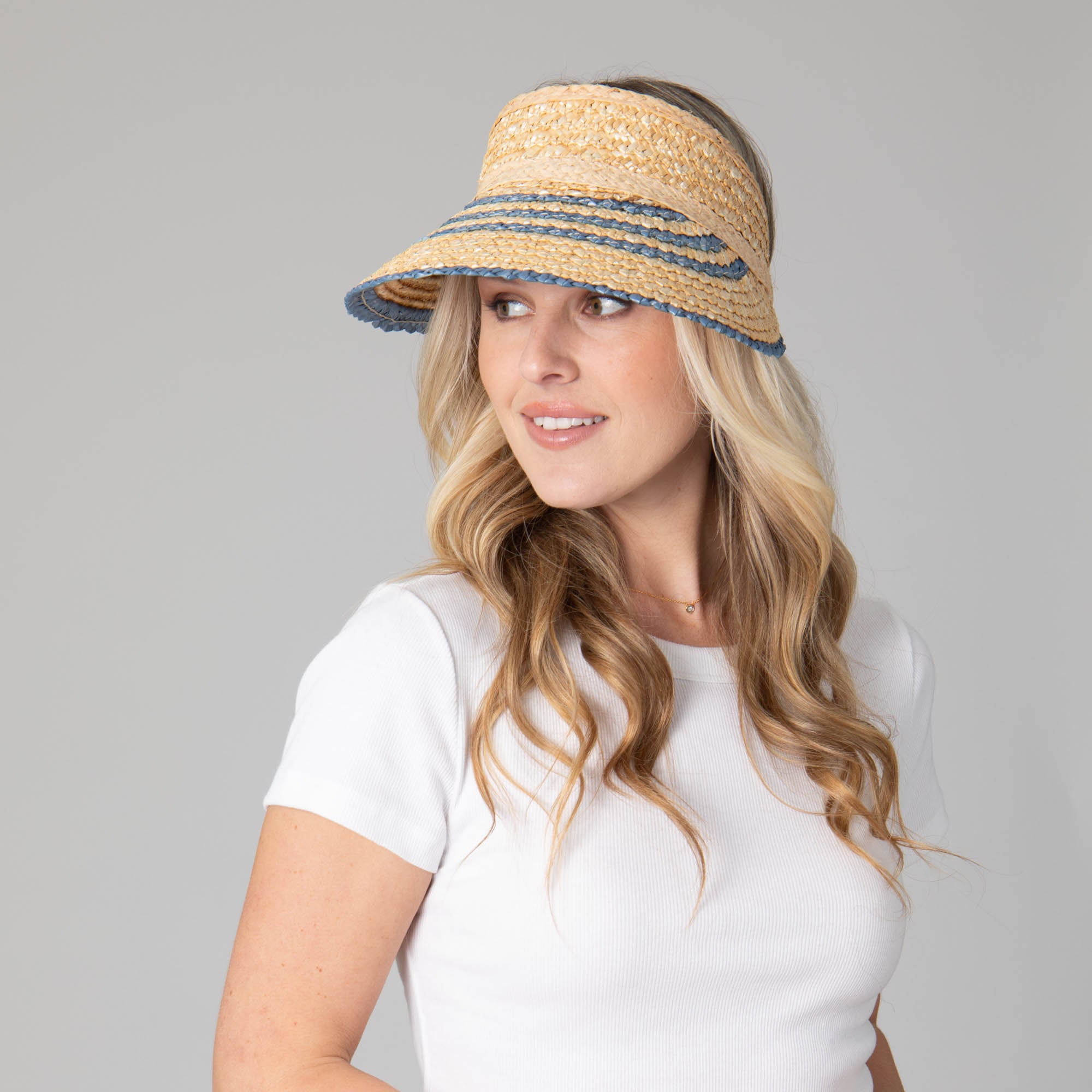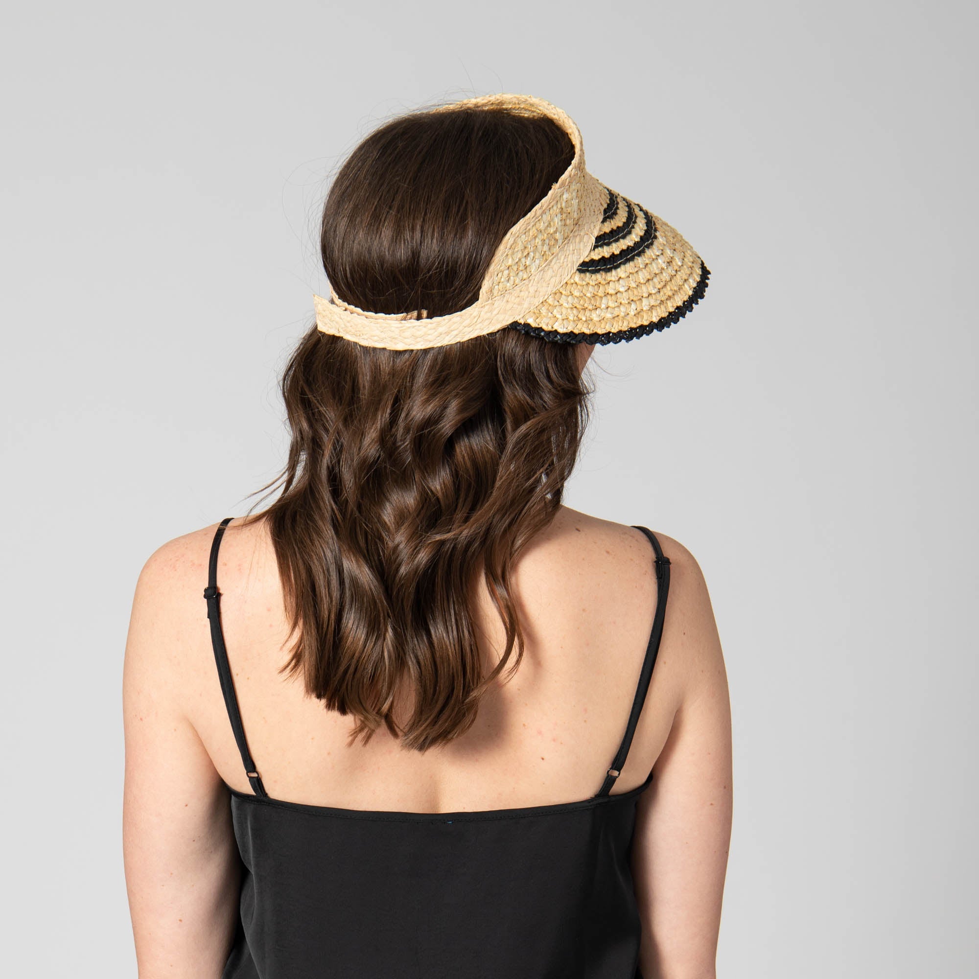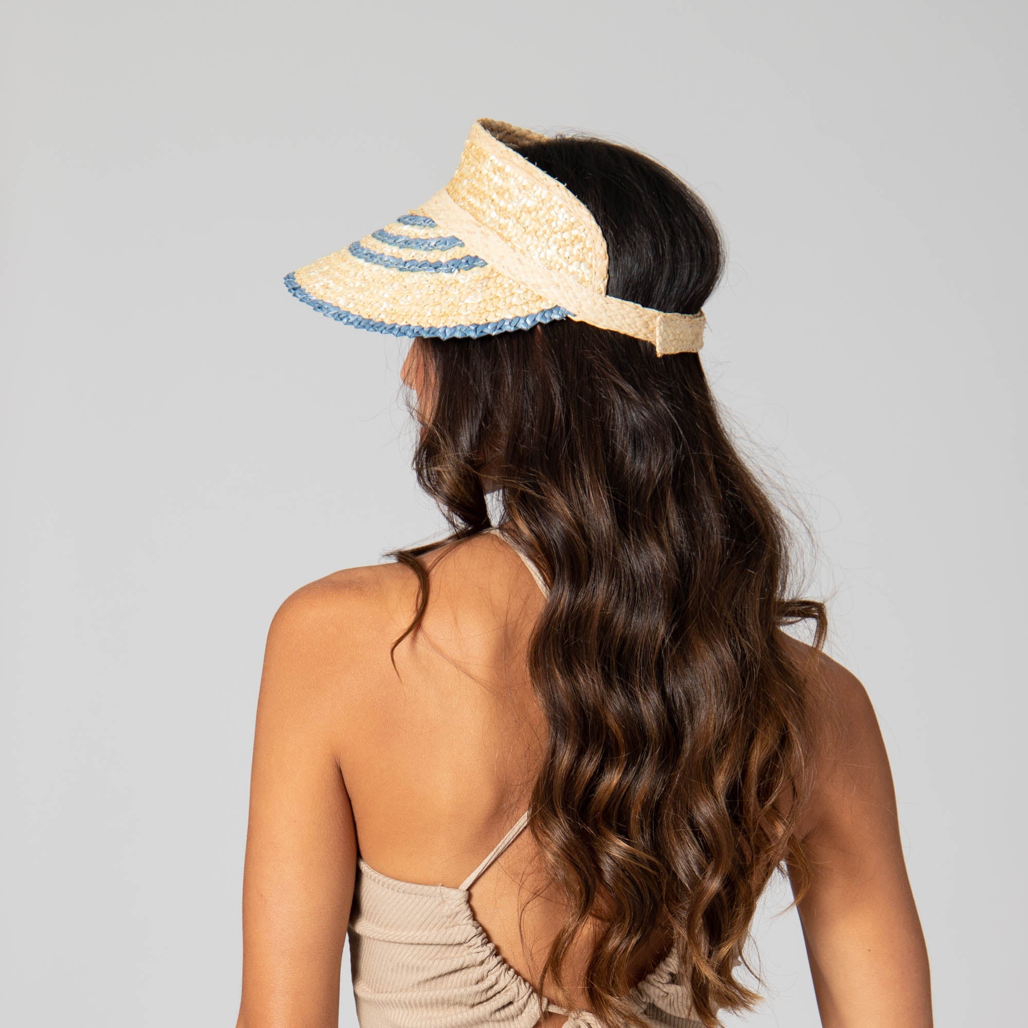 Keep sun, sweat, and hair out of your eyes with our textured wheat straw visor. The curved brim offers optimum sun protection for your face and eyes. Complete with a Velcro back closure to maximize your perfect fit. Available in 3 amazing colors.