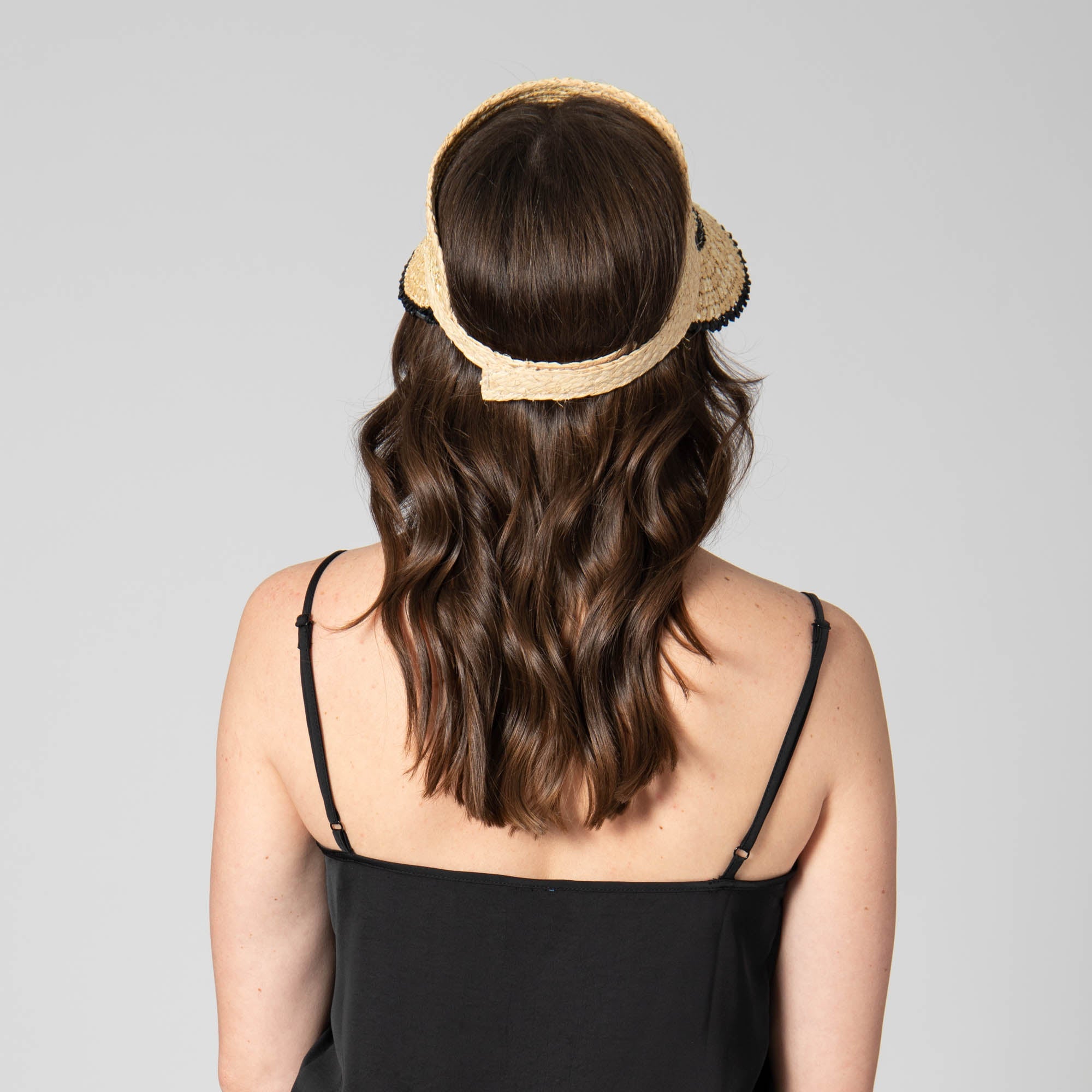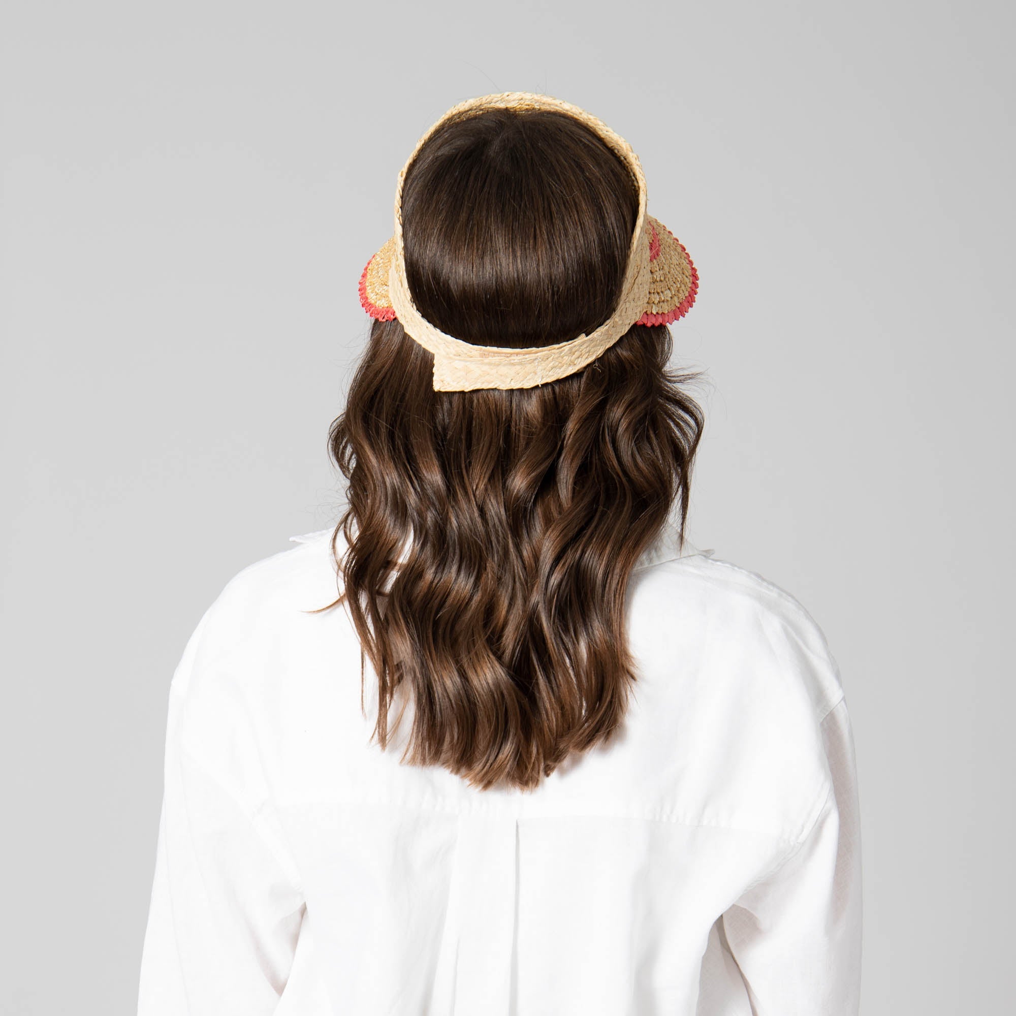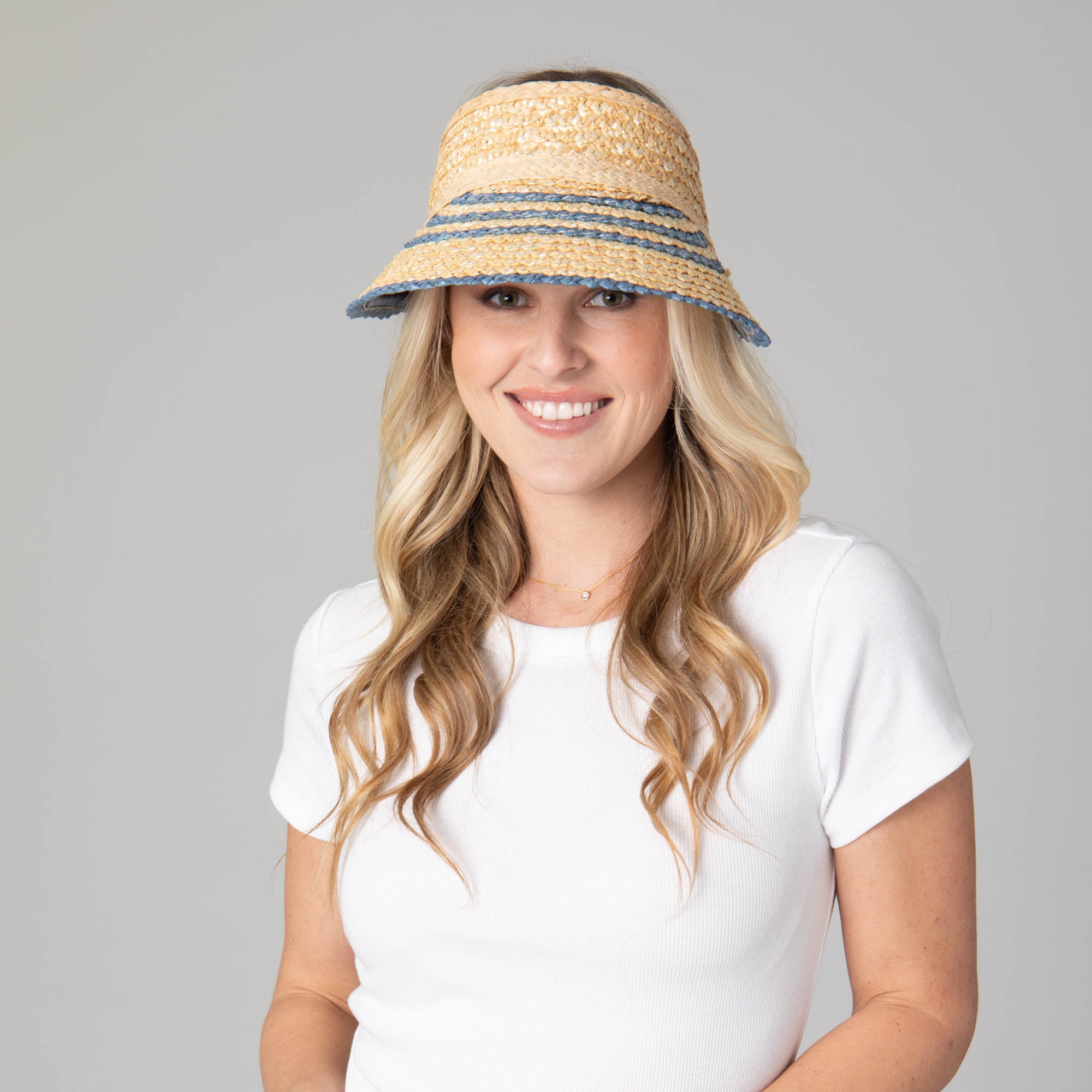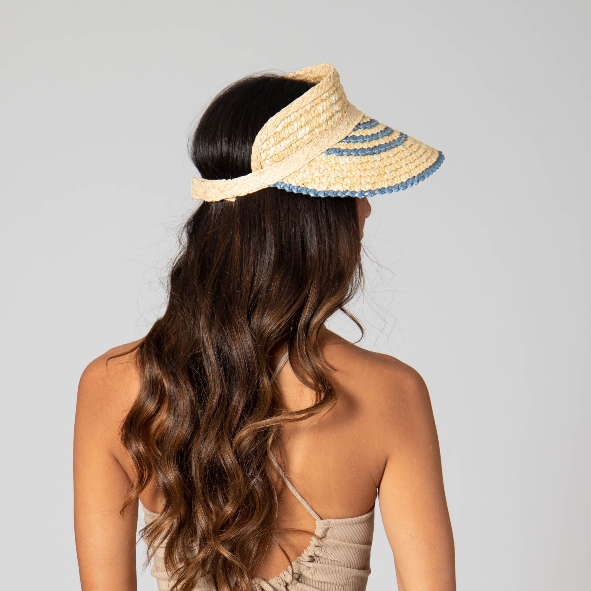 Keep sun, sweat, and hair out of your eyes with our textured wheat straw visor. The curved brim offers optimum sun protection for your face and eyes. Complete with a Velcro back closure to maximize your perfect fit. Available in 3 amazing colors.