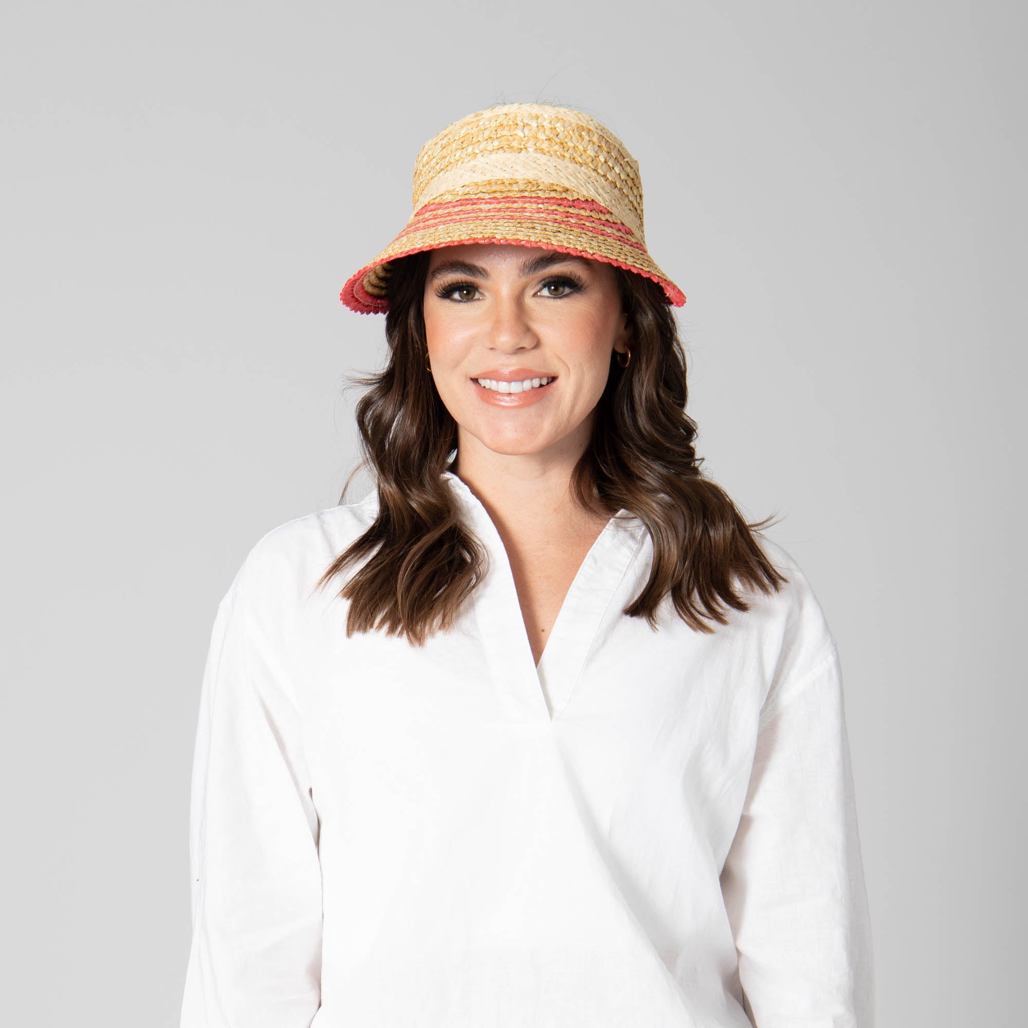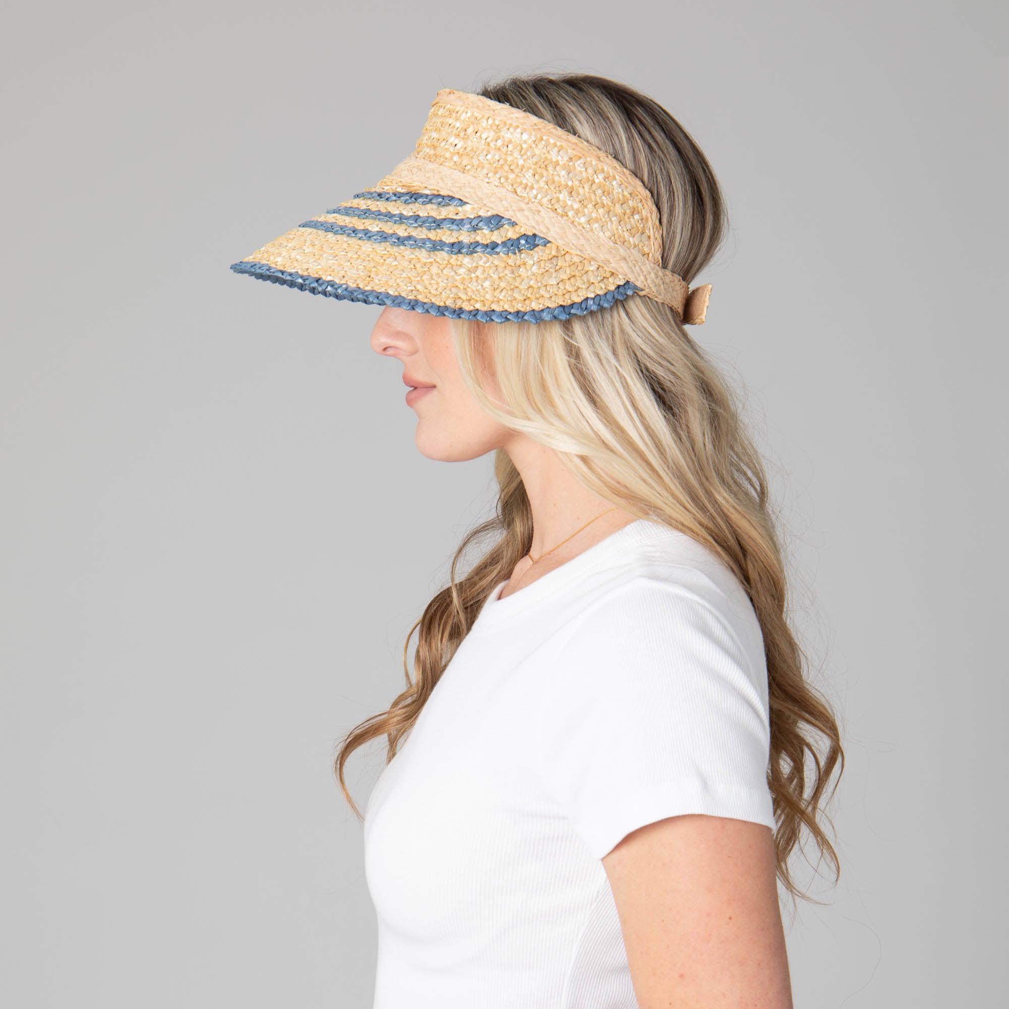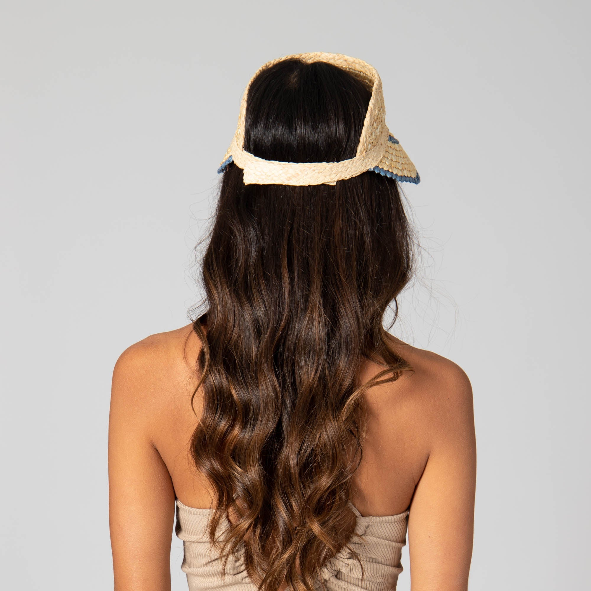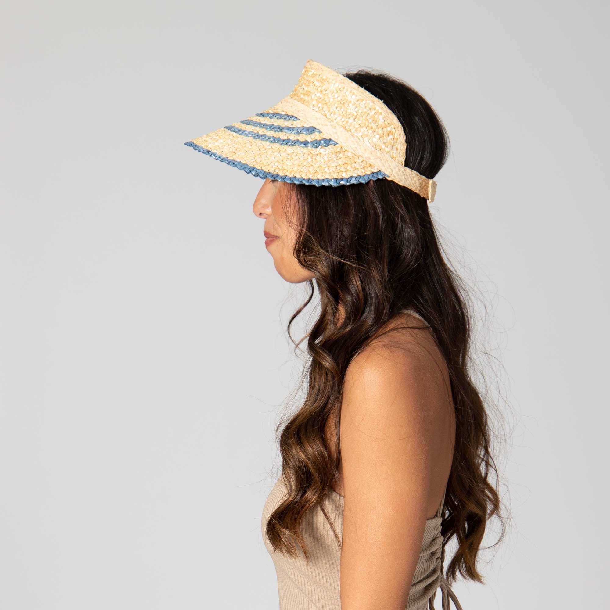 Keep sun, sweat, and hair out of your eyes with our textured wheat straw visor. The curved brim offers optimum sun protection for your face and eyes. Complete with a Velcro back closure to maximize your perfect fit. Available in 3 amazing colors.