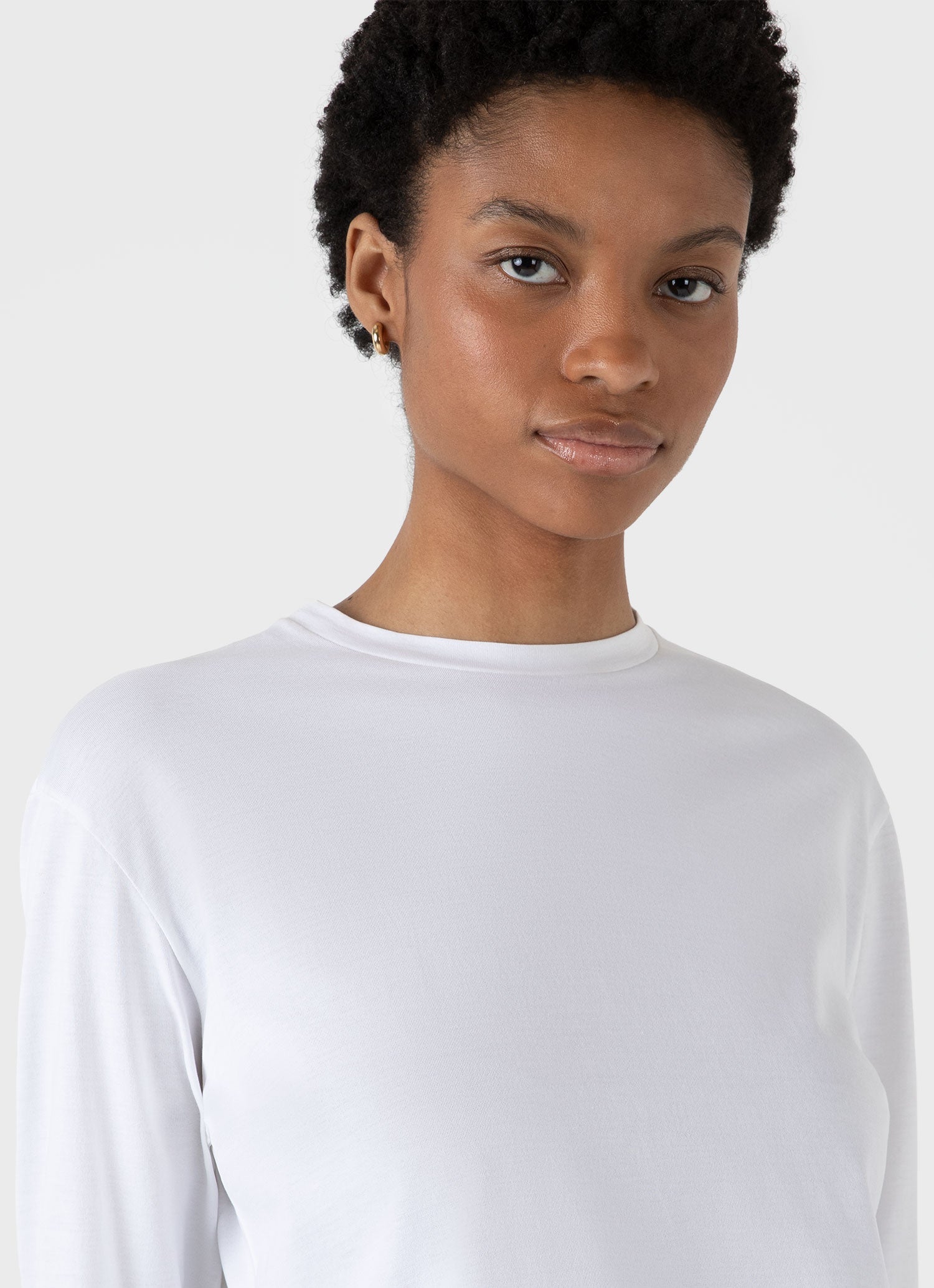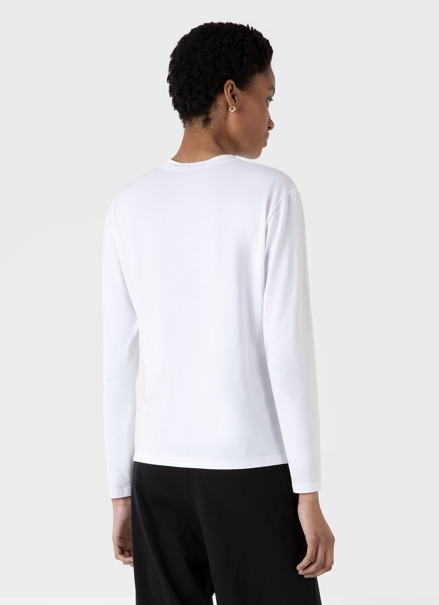 This T-shirt is made with a beautifully soft midweight fabric that’s smooth against the skin and we can trace the Supima cotton to the Californian farm of origin. Cut for a timeless, casual feel, it has dropped shoulders, full-length sleeves and a clean neckline that sits elegantly against the body. Versatile and long-lasting, we believe this is the perfect T-shirt.
