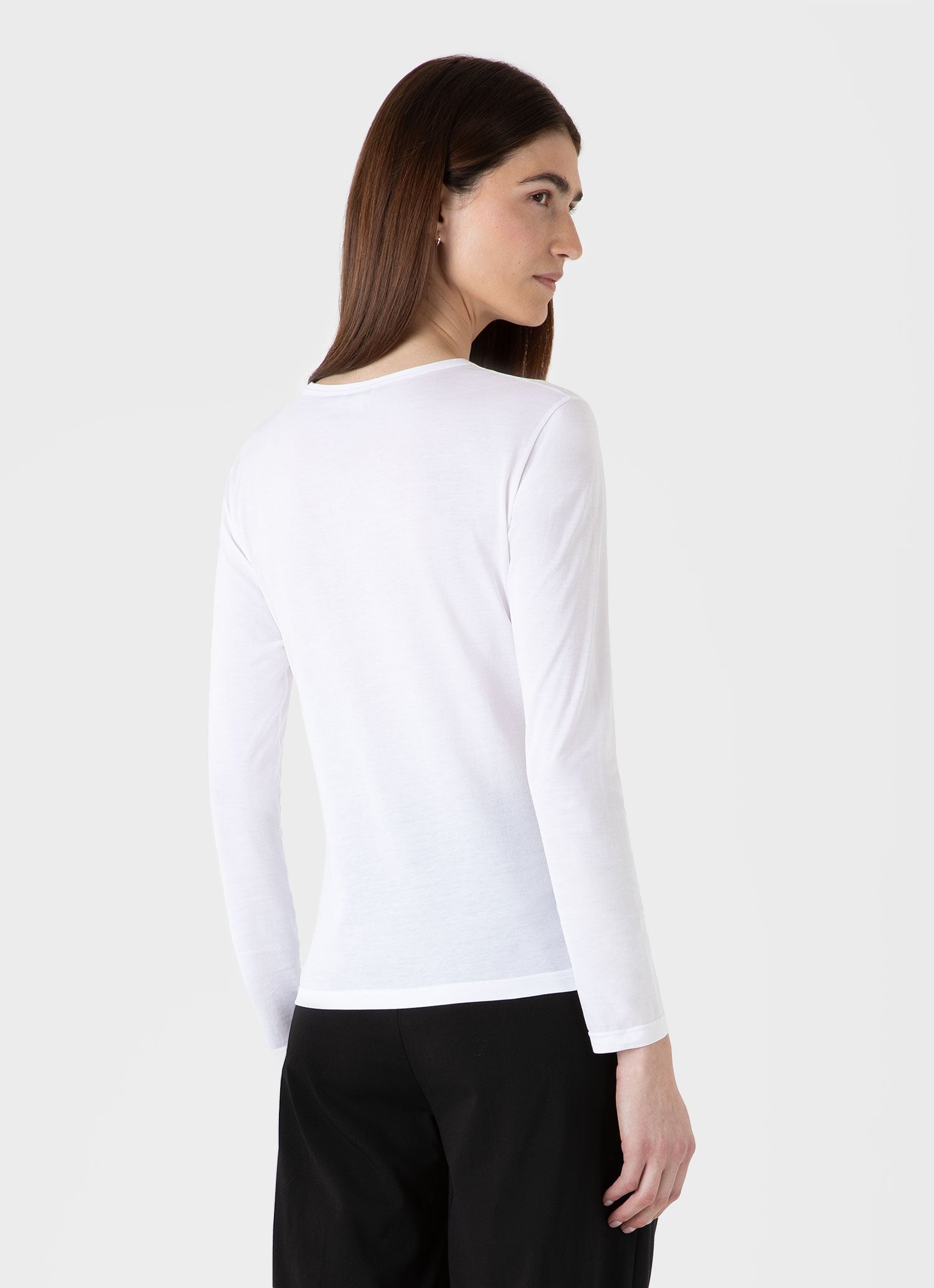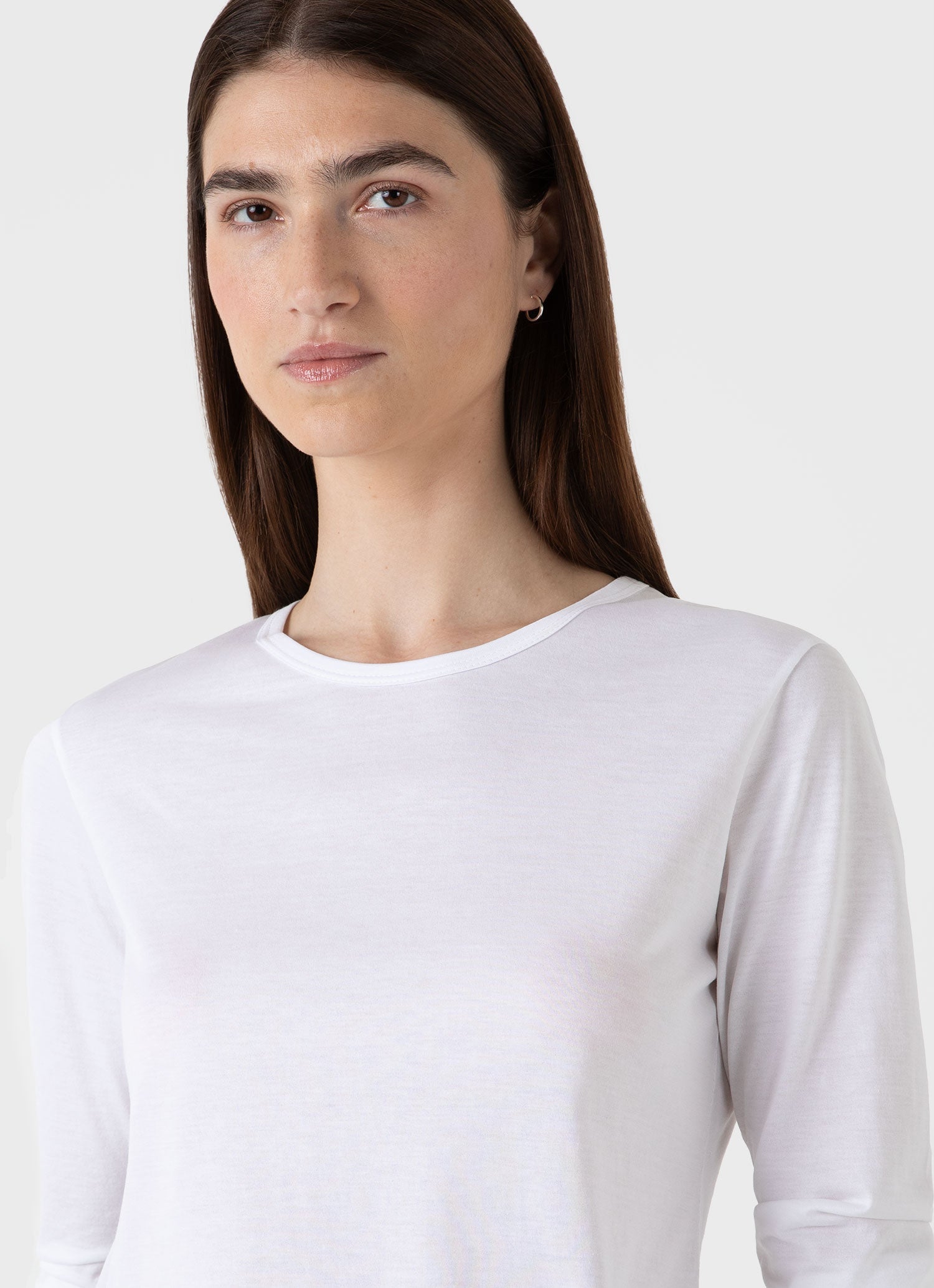 The same body skimming fit and silhouette as our classic crew, but with the addition of full-length sleeves. Sunspel's signature Supima cotton jersey ensures softness and comfort. A perfect layering piece offering more coverage, and the styling options are endless.