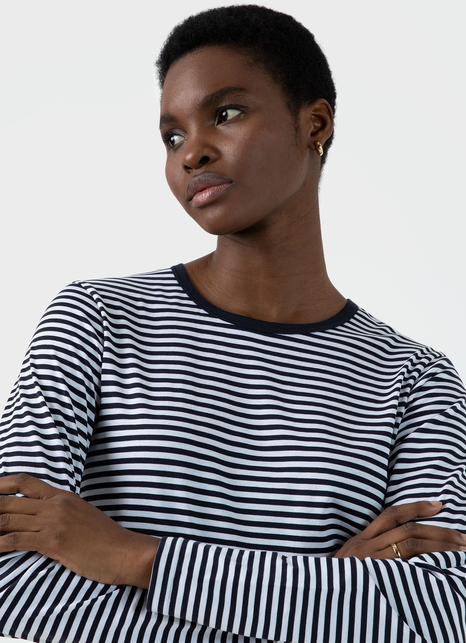 The same body skimming fit and silhouette as our classic crew, but with the addition of full-length sleeves. Sunspel's signature Supima cotton jersey ensures softness and comfort. A perfect layering piece offering more coverage, and the styling options are endless.