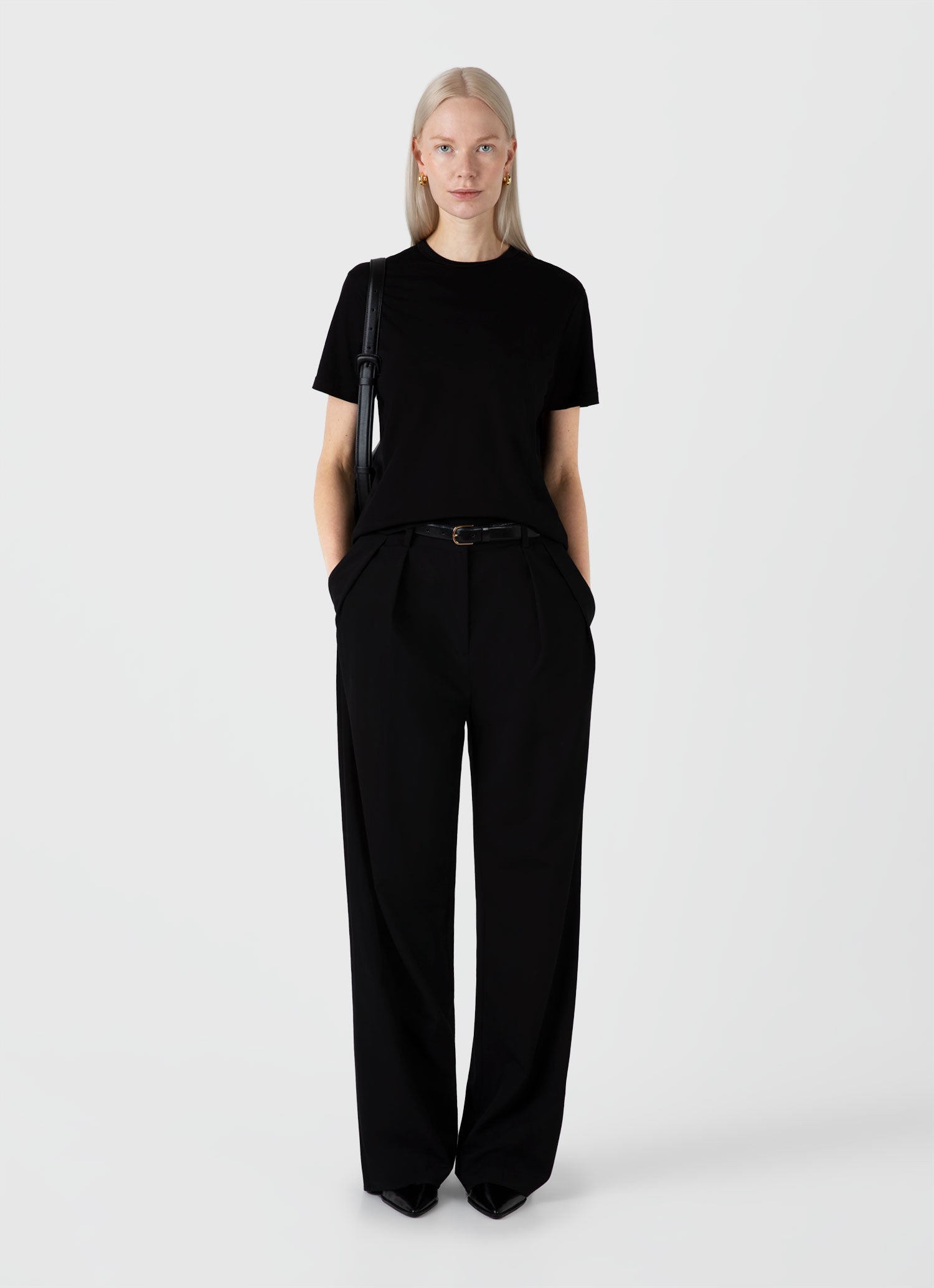 An easy, effortless T-shirt, with a relaxed silhouette and a crew neckline. Lightweight and smooth, it’s handcrafted in our factory in Long Eaton using our signature Q82 Supima cotton jersey which is traceable to a single family-owned farm in California where it is responsibly grown. A true luxury everyday staple.