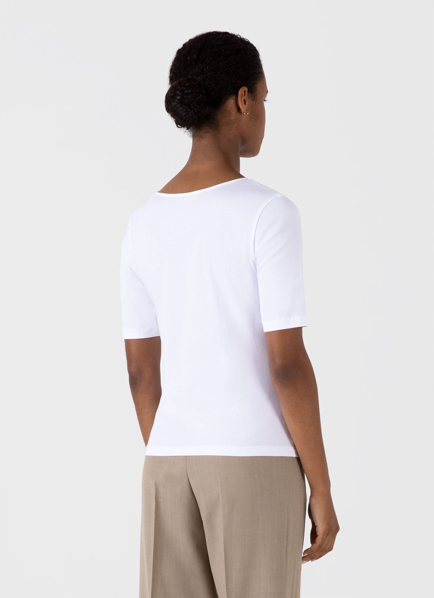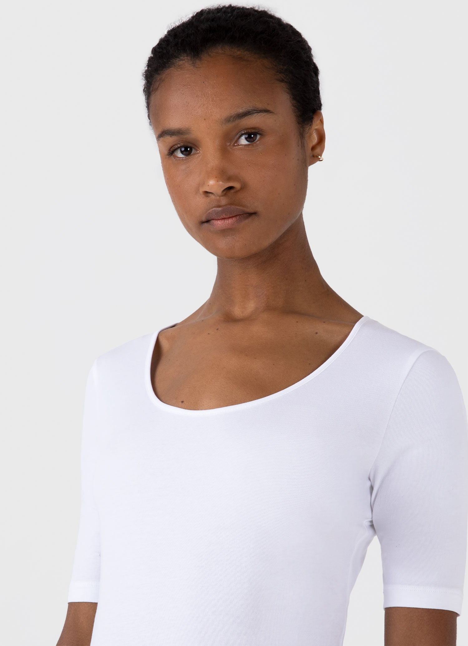 An elegant scoop-neck top crafted in a cotton jersey with a slight stretch for added comfort. With a slim fit, it is versatile and contemporary, transitioning seamlessly between day and evening.