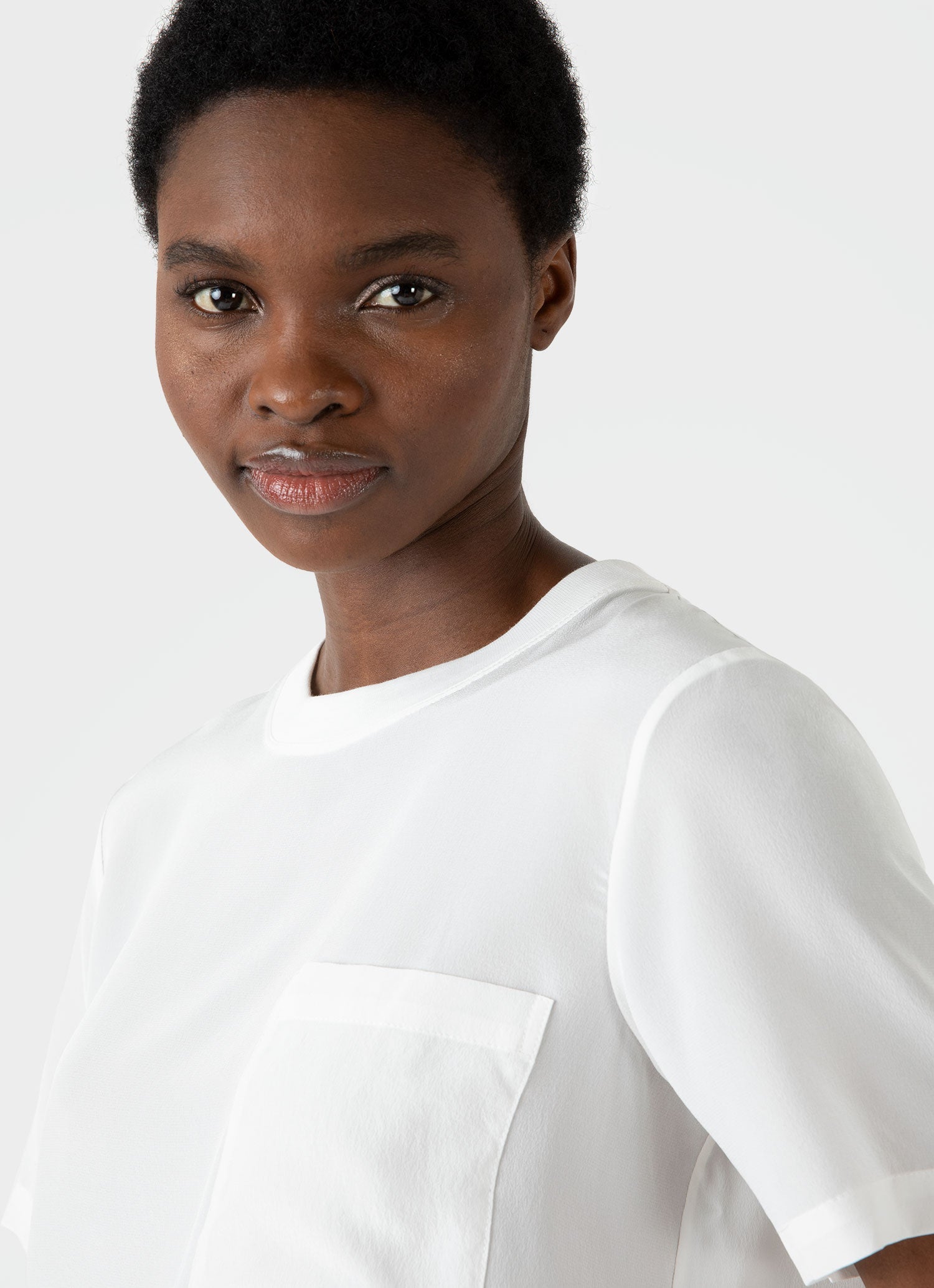 A luxury T-shirt crafted from a lightweight, soft and responsibly sourced silk fabric. With a natural drape, relaxed body fit and jersey trim it can be dressed up as a stylish evening piece or down as a comfortable everyday staple.